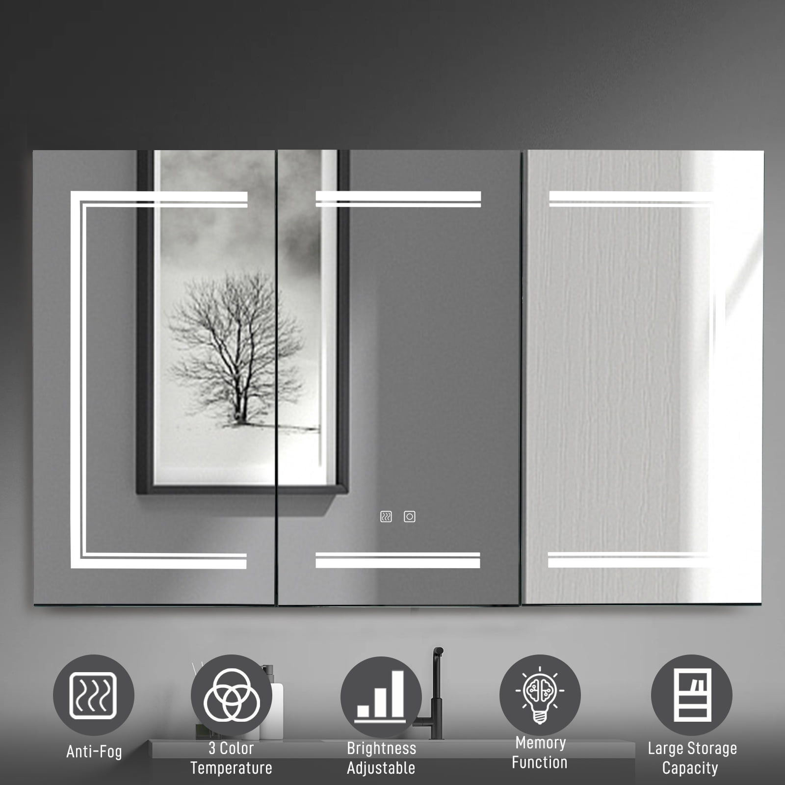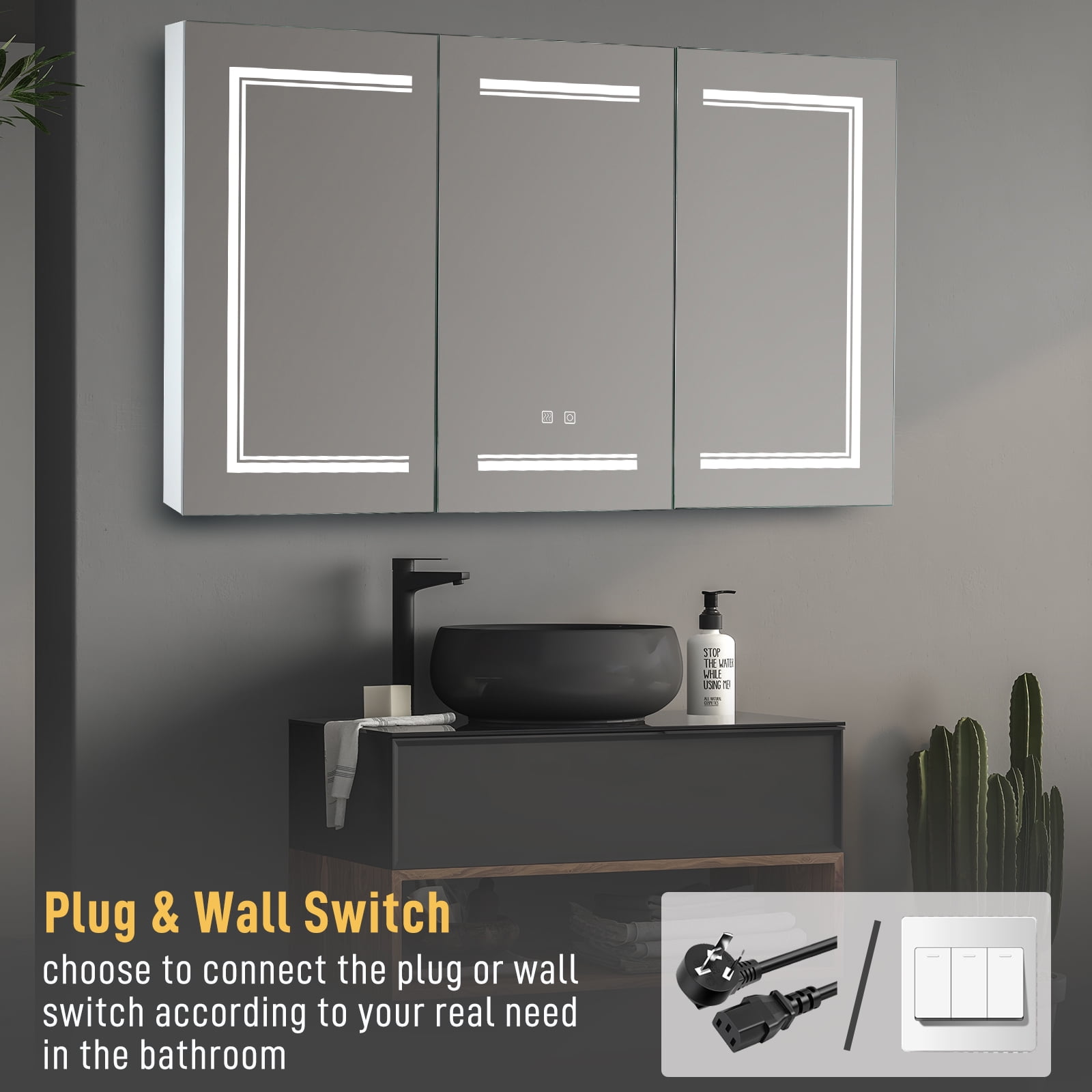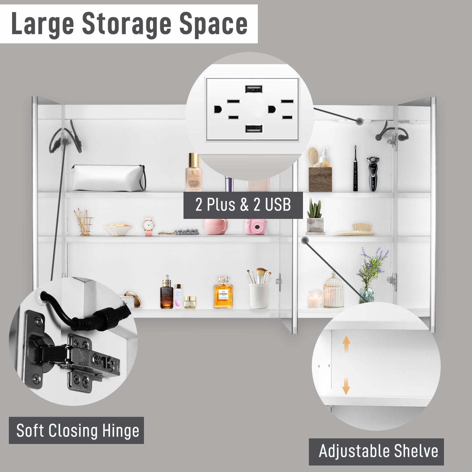 Ktaxon 48″x28″ LED Bathroom Mirror Cabinet with Lights, Wall-Mounted Medicine w/ Defogger, Dimmable, Memory function, Outlets & USB, White