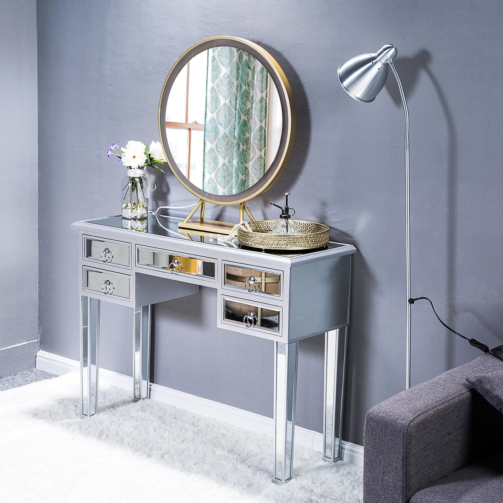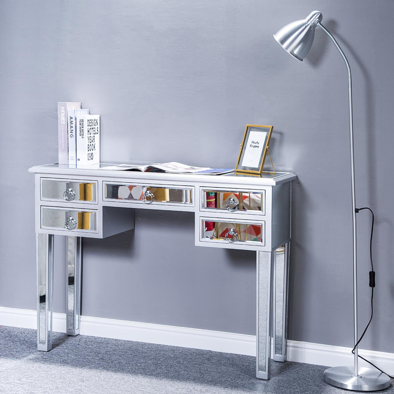 Ktaxon 5-Drawer Mirrored Makeup Table Console Table- Mirrored Desk Vanity Furniture Nightstand Glass (Silver)