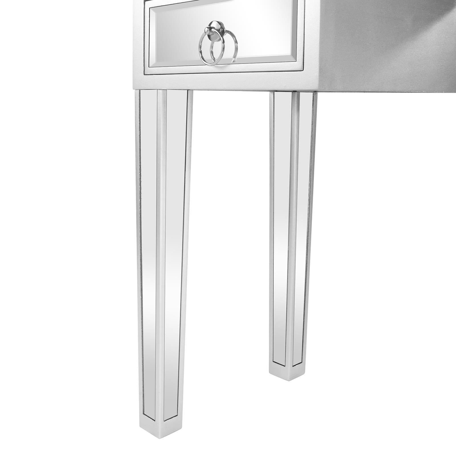 Features: DRAWERS: This Makeup Table comes with 5 slide-out drawers for storage, Pull Ring handles on drawers make your room more elegant. The compact 2 drawers all open and close very easily with metal smooth glide double runners DESIGN: This mirrored furniture is modern and clean in design with simple straight edges and beautiful beveled edges. Due to the reflective mirrored finish this furniture helps give rooms the feeling of more space due to the reflection of light MATCH YOUR ROOMS: Give your bedroom or living room a more glamourous look with this mirrored bedside cabinet. It can be used as a nightstand, console table. HIGH-QUALITY FURNITURE: To give your space a modern look, we designed the Mirror 5-Drawer End Table Nightstand with durable, and mirrored glass that are easy to care for and built to last. This nightstand adds a touch of class and charm to any home. The tall legs provide enough clearance to sweep or vacuum beneath. Specifications: Material: Density Board & Glass Dimensions: (41.73 x 15.35 x 31.1)â/ (106 x 39 x 79)cm(L x W x H) Weight: 49.6lbs / 22.5kg Drawer Quantity: 5pcs Package Includes: 1 x Desk