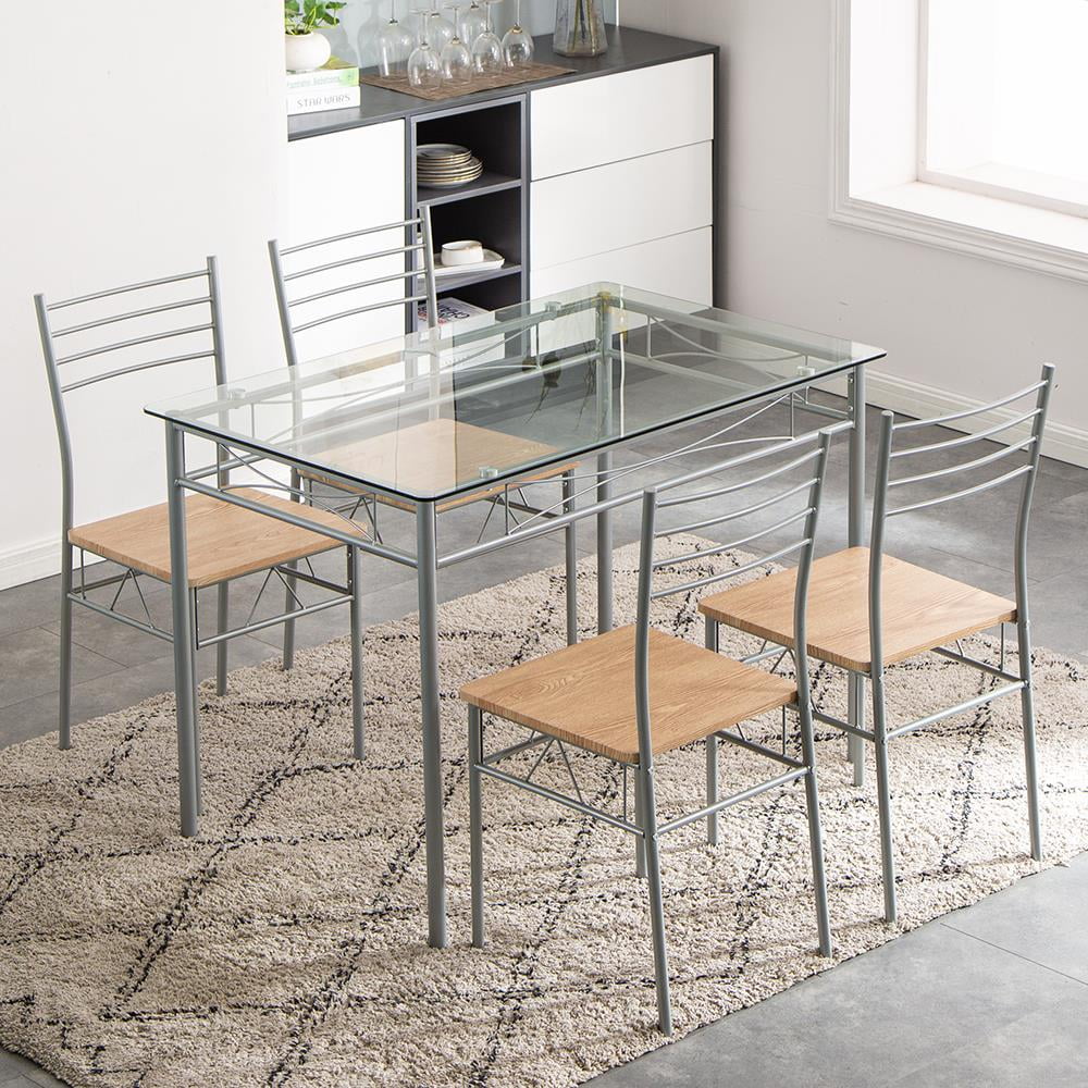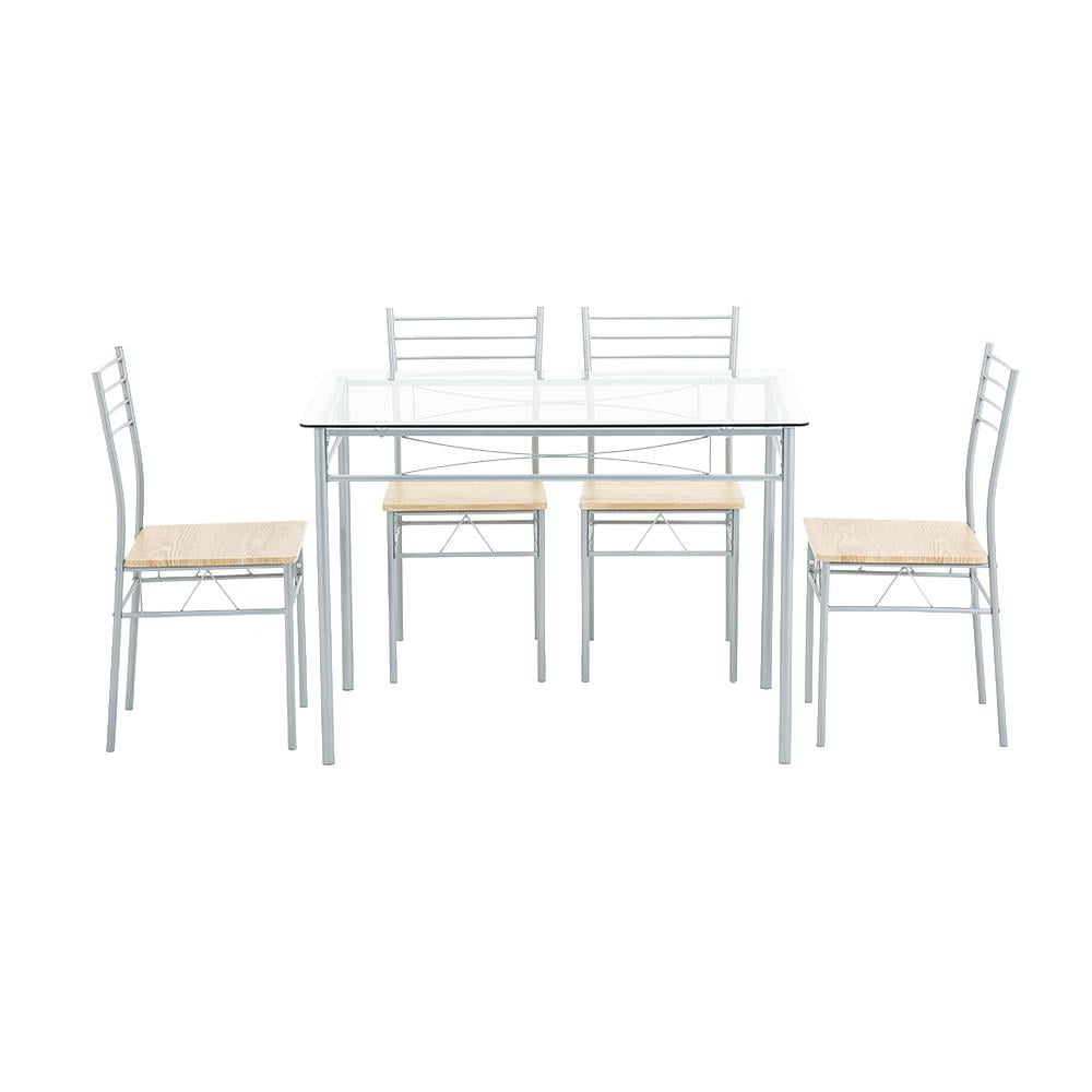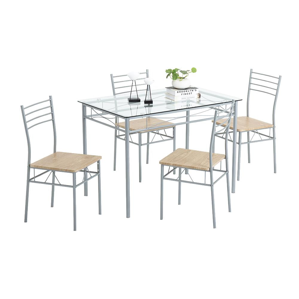 Ktaxon 5 Piece Dining Table Set Wood Metal Kitchen Breakfast Furniture with 4 Chair, Silver