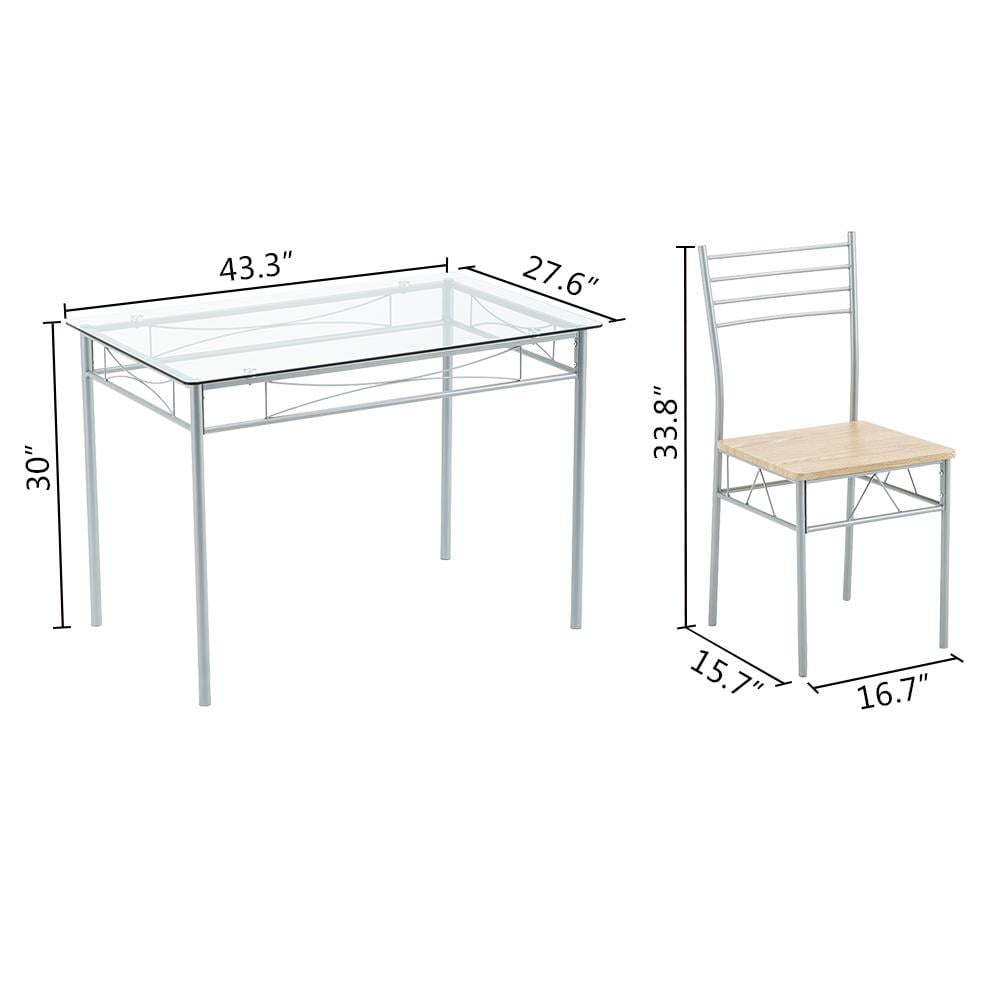 Sold by set, includes a table and 4 chairs Metal frame, sturdyLarge load capacity for table and chairs Glass tabletop and MDF seats over a sturdy, powder-coated steel frame, this dining set is built to last for years to come