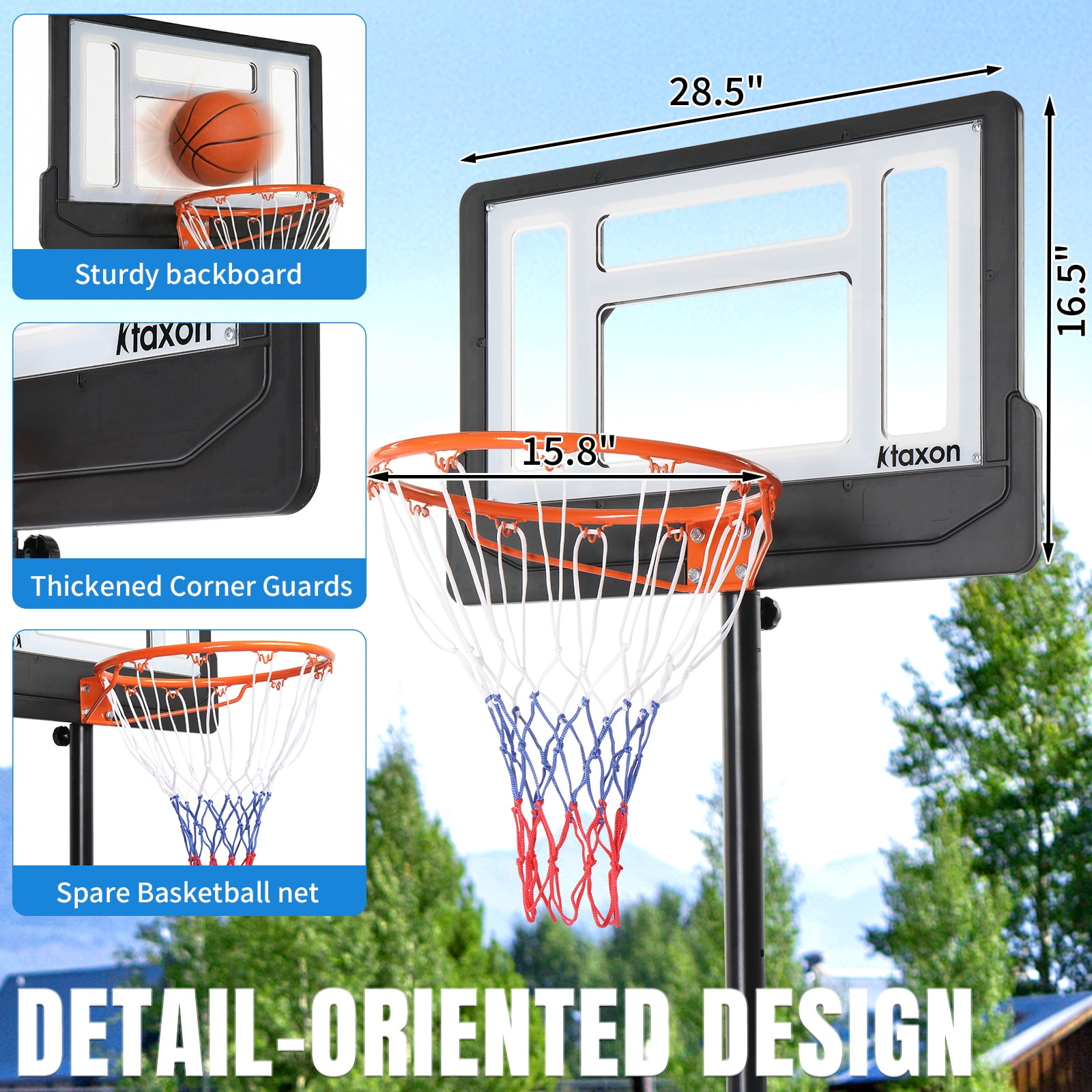 Ktaxon 6.5-8ft Basketball Hoop System, 33in Portable Basketball Goals with Basketball and Indoor Outdoor