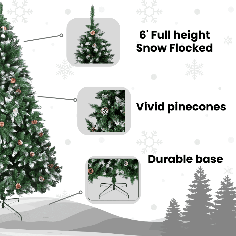 Ktaxon 6ft Upgrade Pinecones Christmas Tree, Snow Flocked Xmas Trees Unlit, 920 Branch Tips, Indoor & Outdoor Decoration, Green