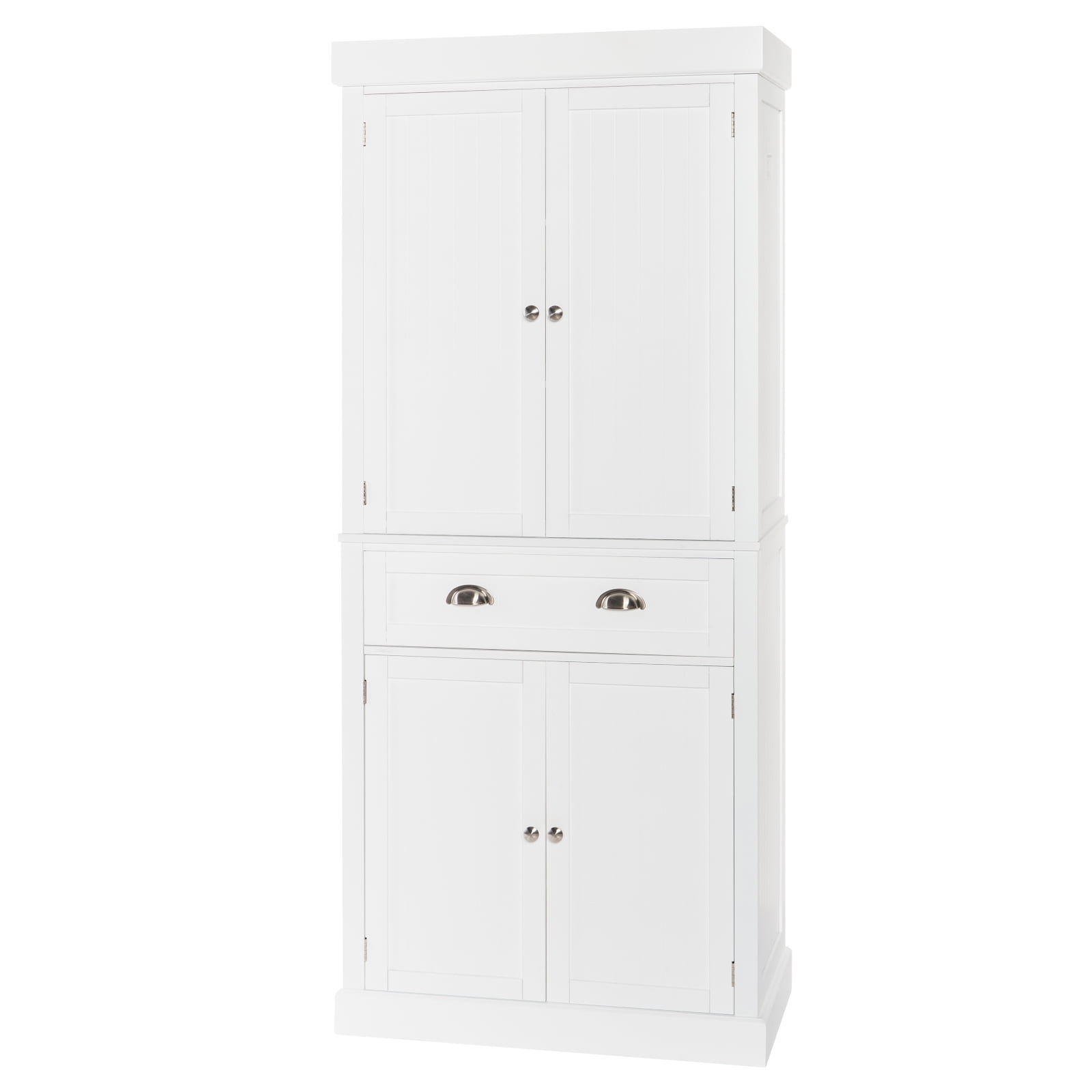 Ktaxon 72″ Kitchen Pantry Storage Cabinet with 4 Doors Large Drawer and Adjustable Shelves for Living Room, White