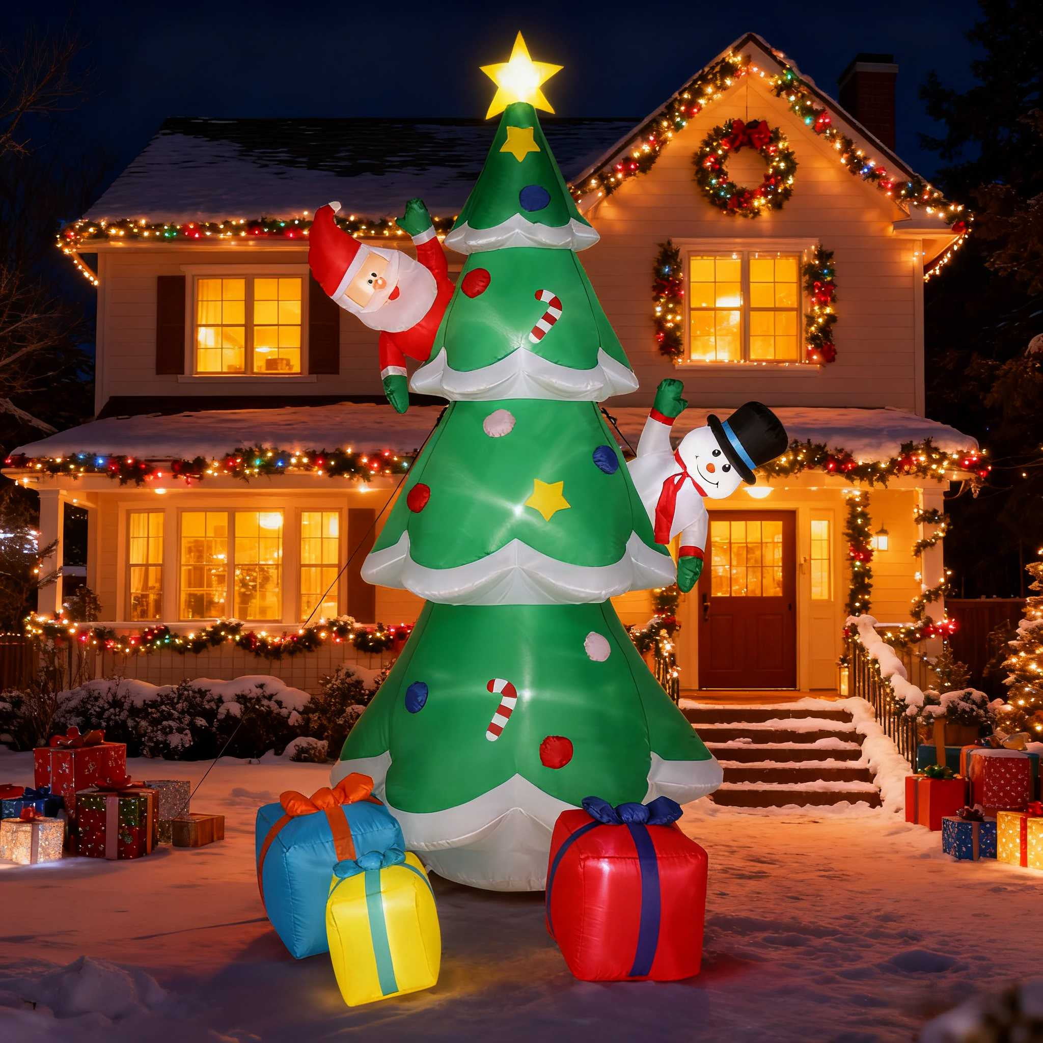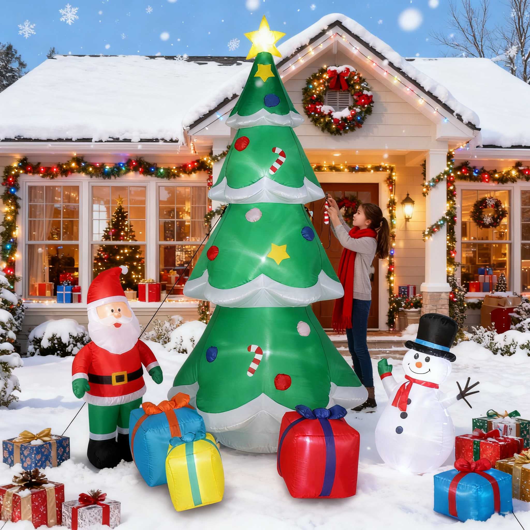 Ktaxon 8ft Inflatable Christmas Tree Decoration LED with Santa Claus,Snowman,Boxes Blow Up Yard Decoration
