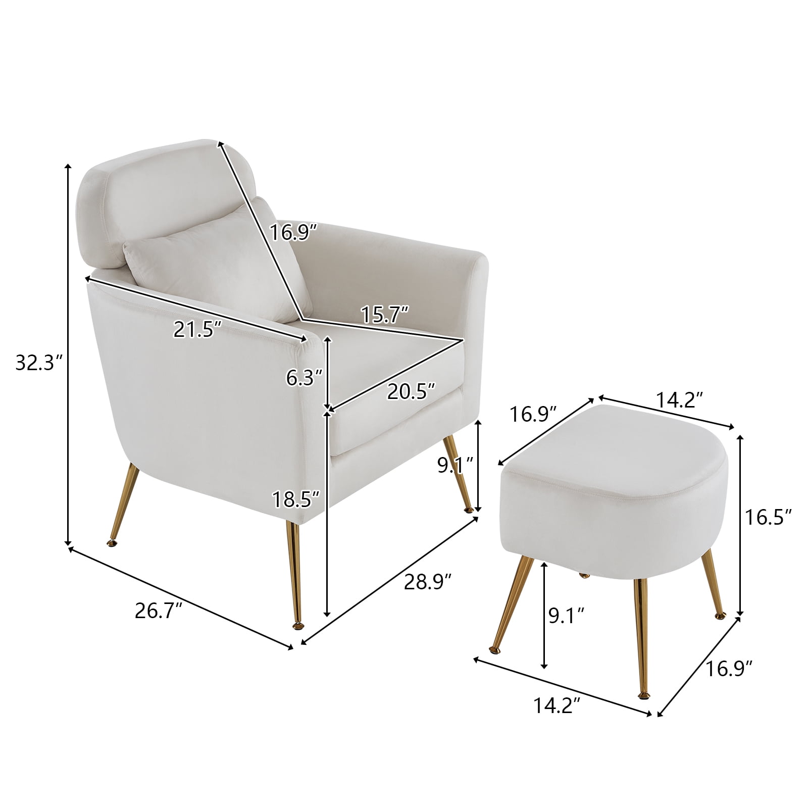 Ergonomic Design: The chair features an ergonomic backrest design that provides optimal support and comfort for the user’s posture. Plush Rebound Cushion: Enjoy a luxurious seating experience with the soft and responsive rebound cushion that ensures lasting comfort. Adorable Ottoman: The set includes a charming Ottoman that complements the chair’s style, offering a convenient space to rest your feet. Lumbar Pillow: Enhance your comfort level with the included lumbar pillow, designed to provide extra support to your lower back for extended sitting sessions. Versatile Styling: With its elegant and sophisticated design, the chair seamlessly fits into various interior styles, from modern to traditional, make it a visually appealing addition to any room, elevating the overall aesthetics of your space.