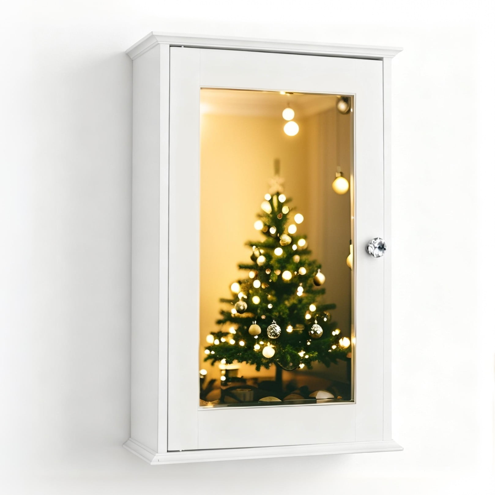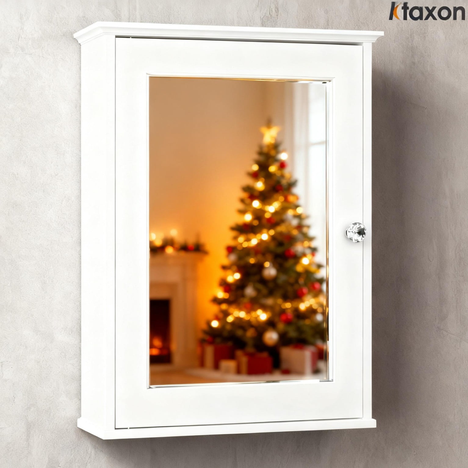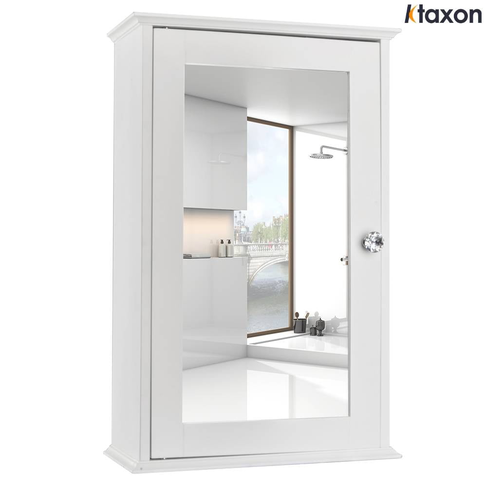 Ktaxon Bathroom Cabinet Wall Mount Mirrored Medicine Cabinet Storage Organizer with Single Door and Adjustable Shelves White