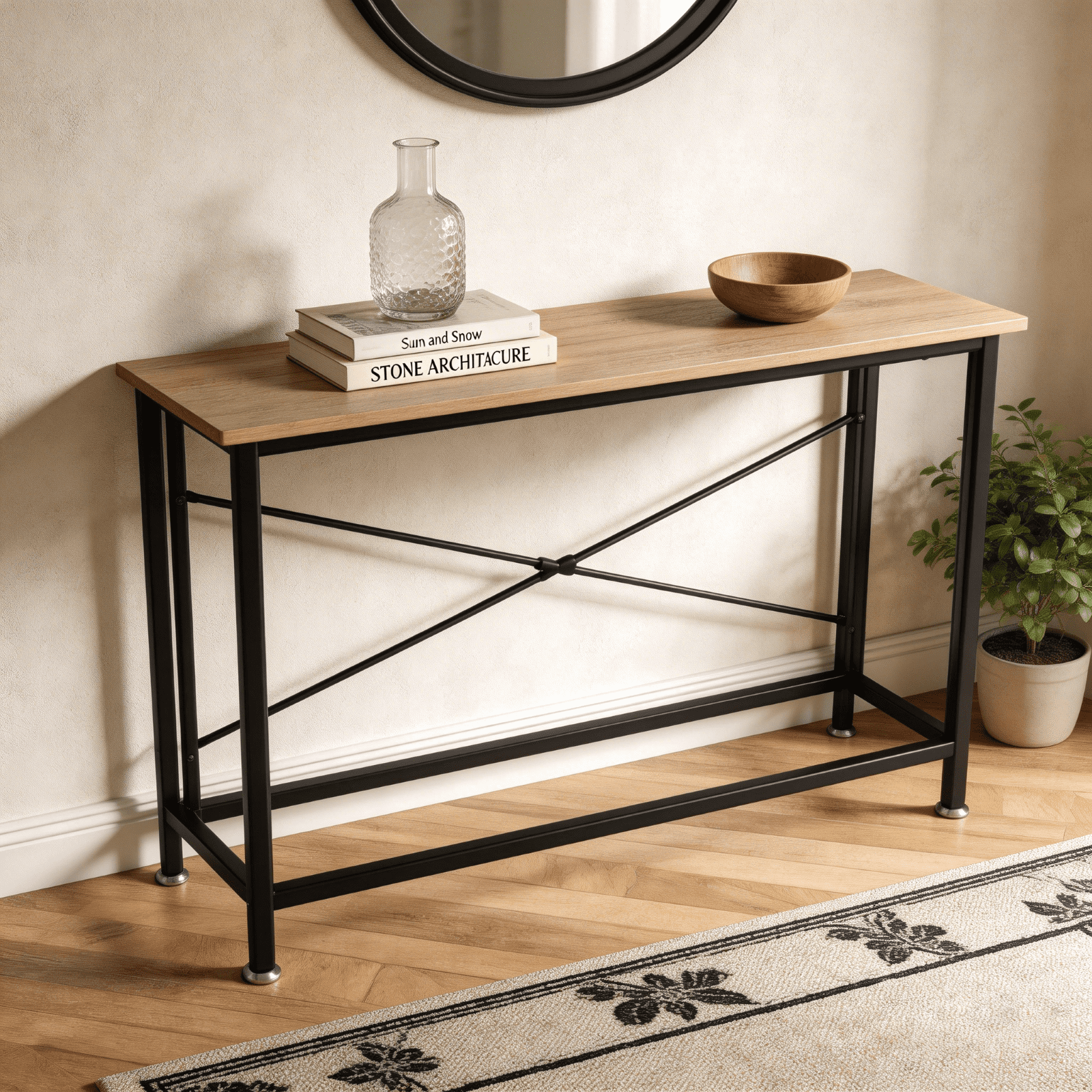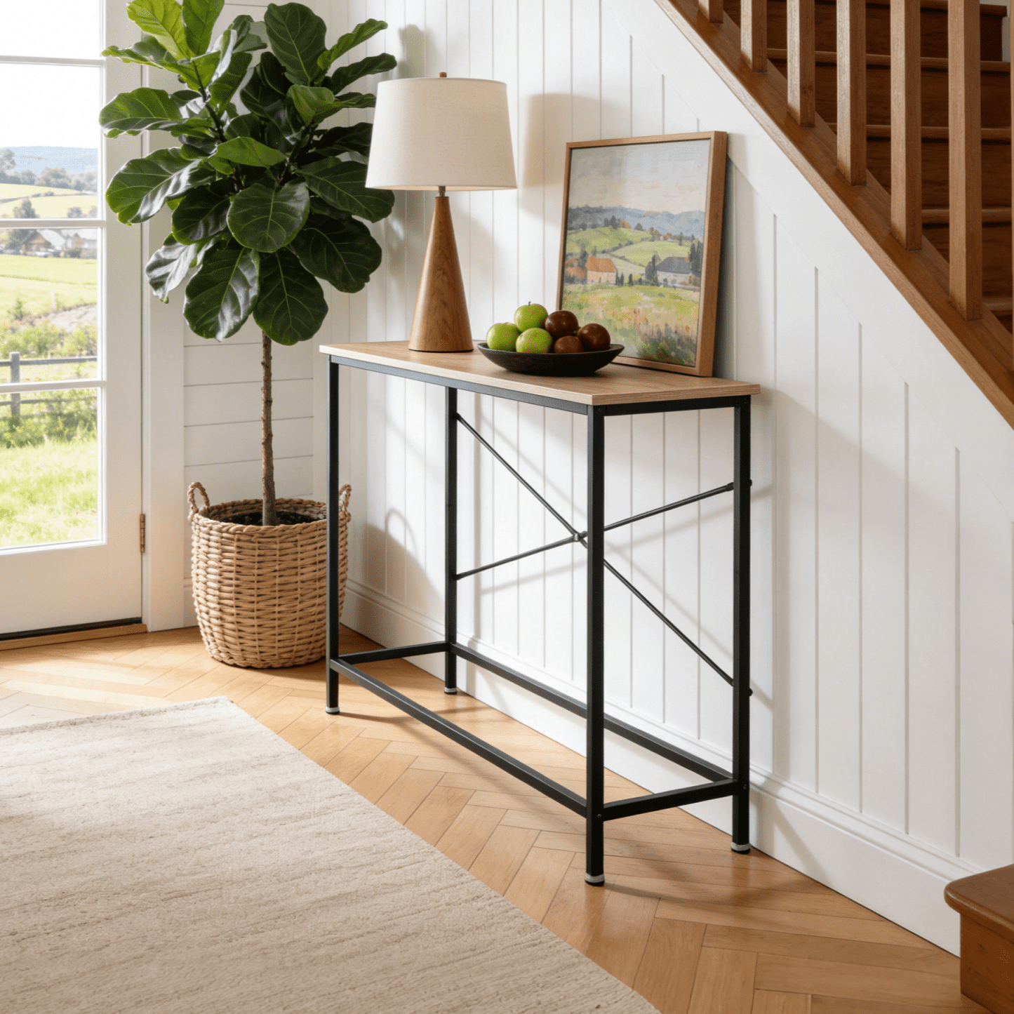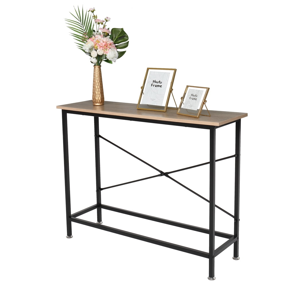 Ktaxon Modern Console Table, 41.3″ Narrow Sofa Table TV Stand with Sturdy X Metal Frame in Entryway, Living Room, Hallway, Bedroom, Hotel, Natural
