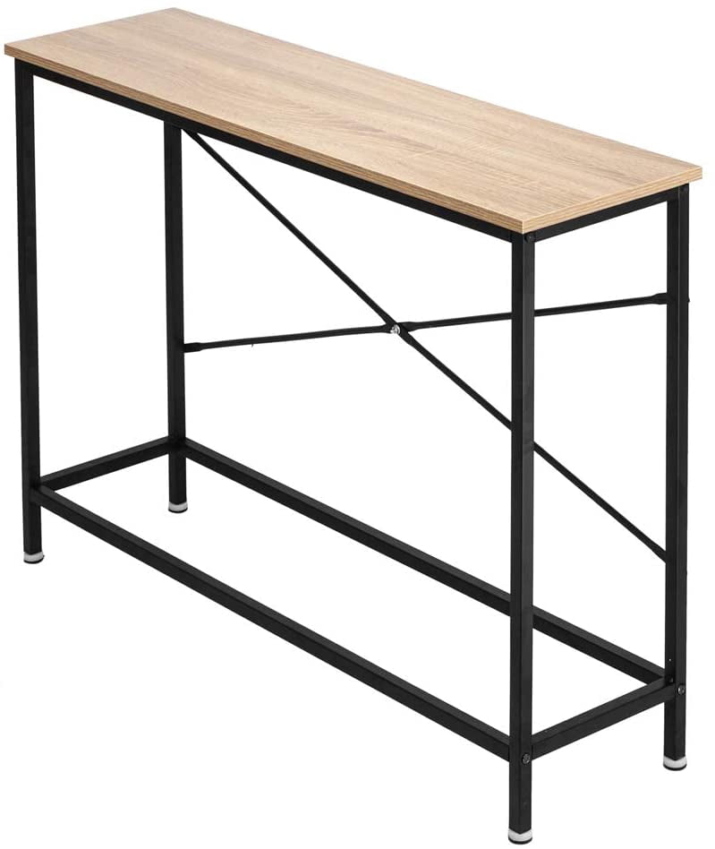 Ktaxon Console Table Sturdy Metal Frame Sofa Table TV Stand with Scratch-Resistant & Water-Resistant Wooden Top Features: Ktaxon console table sofa table tv cabinet sturdy metal frame table Ideal as a console table, sofa table, entryway table, foyer table, display table and more. Comes with 40.5″L x 11.8″W desktop, Provides ample space to display your accessories. Entry table built to last. Simple design and appearance suitable for any home decor style interior Specifications: Material: MDF Color: Oak Color Overall Dimension: 40.5″L x 11.8″W x 30.3″H Weight: 15.87lbs / 7.2kg Package Includes: 1 x Console table 1 x Manual Warm Prompt: Please confirm the product size before purchasing, and confirm that our product size is in line with your requirements!