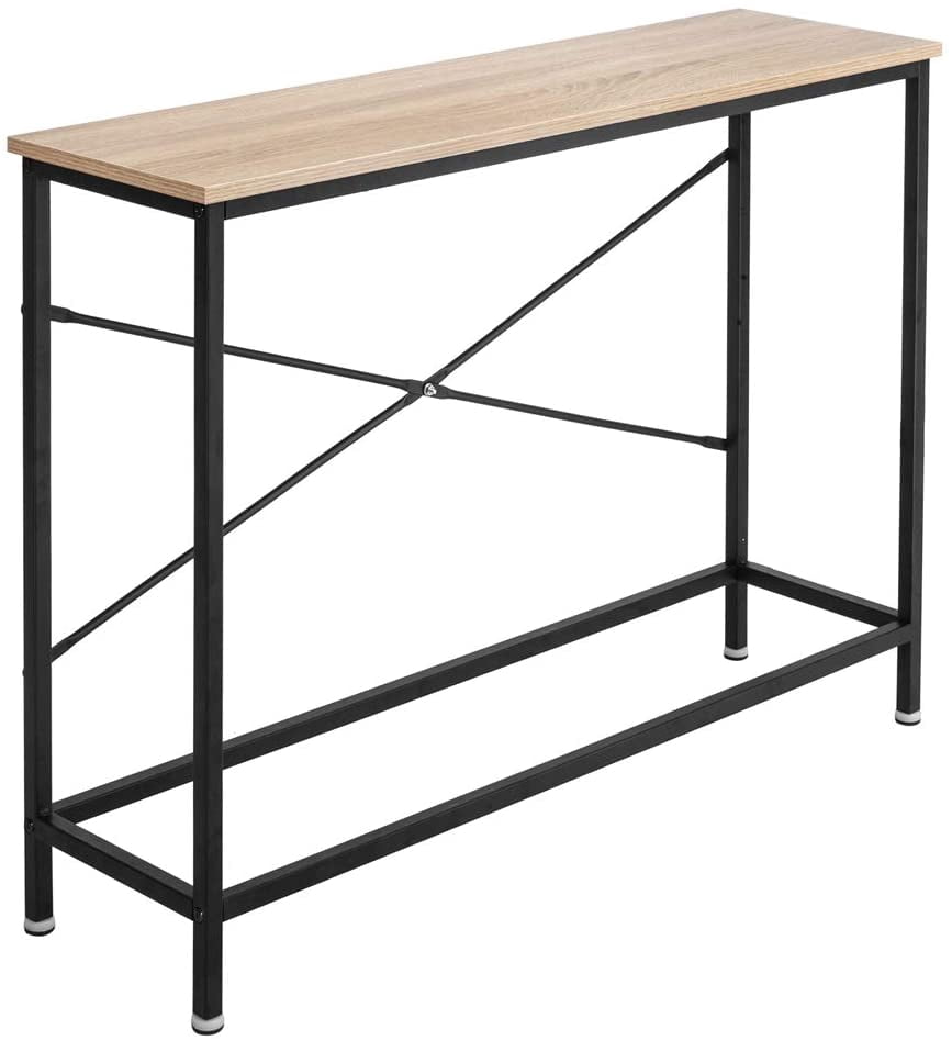 1.STURDY CONSTRUCTION – Made of black metal frame, this console table features superior durability and stability. Comes with two additional baby-proofing transparent corner guards prevent painful bumps 2.VERSATILE – Works great as a console table, entry way table, Hall table, display table, etc. This is a good table for behind the couch to keep your phone chargers, remotes, keys and other items you need close by or behind a corner bed to sit lamps on 3.SPACIOUS TABLETOP – Features a 40.5″L x 11.8″W tabletop, providing spacious room to display your accessories. Water-resistant and scratch-resistant wood veneer ensuring long lasting use 4.STYLISH & ELEGANT – The sleek narrow lines of this console table allows it to blend in seamlessly with any decor styles. Detached cross bar on the behind for added sturdiness. adjustable feet for easy leveling on uneven floors and to protect floors from scratches 5.Customer Service – Since the satisfaction of customer is always our primary concern,so if you have any problem when using this product,please feel free to contact us via email,we’re always happy to help!