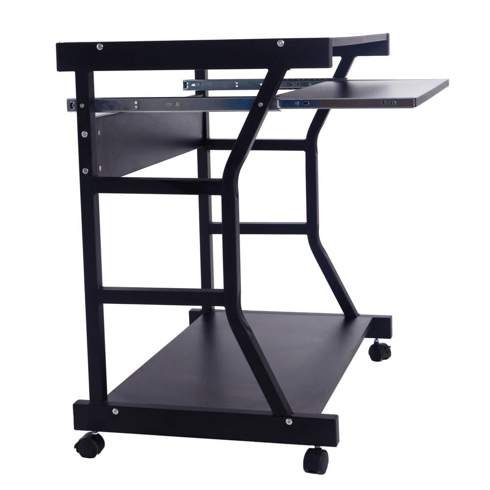 Warm Prompt: Please confirm the product size before purchasing, and confirm that our product size is in line with your requirements Features: 1. It is made of chipboard & steel material, and stable 2. Moveable four-wheel design, easy to move 3. A good decoration to embellish your home 4. Beautiful and easy, save a space 5. Elegant, fine workmanship, beautiful and fashion Specifications: 1. Material: Chipboard & Steel 2. Color: Black 3. Overall Dimensions: (27.55 x 18.9 x 29.53)” / (70 x 48 x 75)cm (L x W x H) 4. Keyboard Tray: (28.0 x 11.8)” / (71 x 30)cm (L x Deep) 5. Mouse Surface: (10.4 x 6.6)” / (26.5 x 17)cm (L x Deep) 6. Weight: 28.66lbs / 13 kg Package Includes: 1 x Computer Desk 12 x M5*50 Screws 4 x M4*30 Screws 4 x M3.5*12 Screws 4 x M4 Screws 1 x Screwdriver 2 x Drawer Slides 4 x Casters