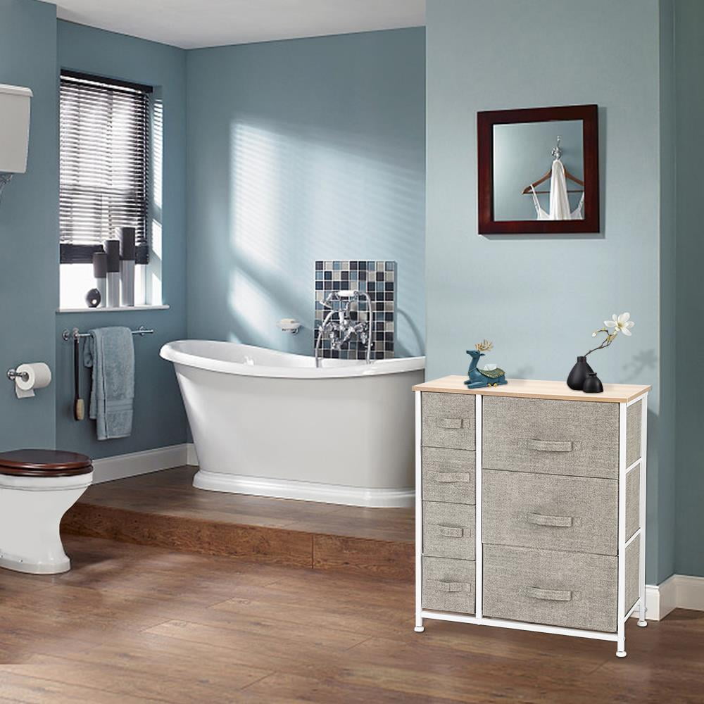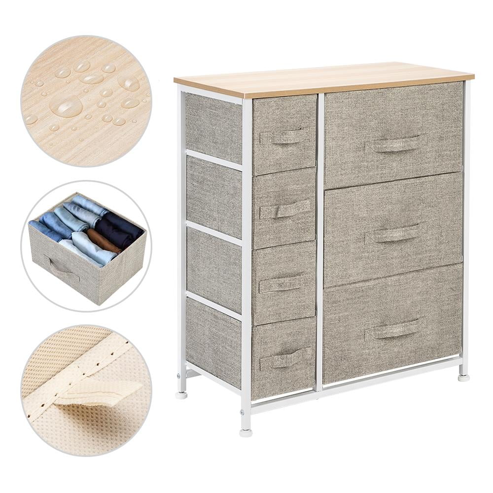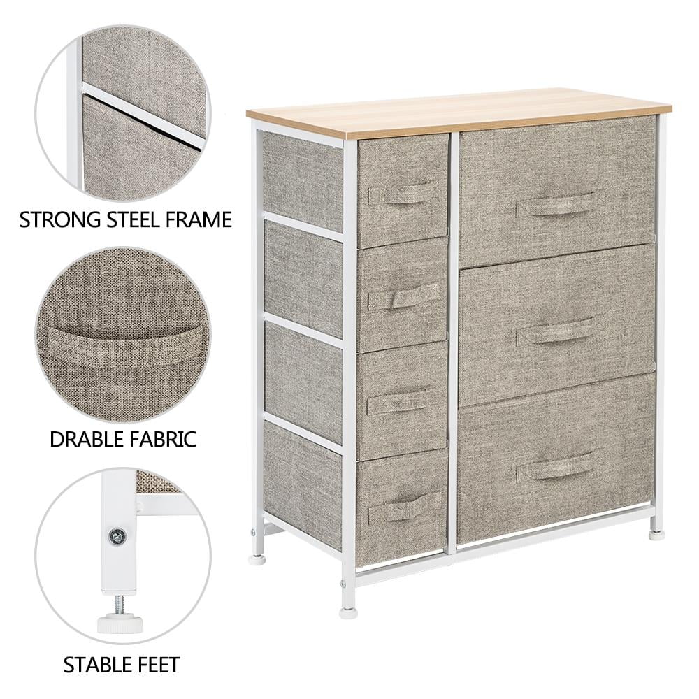 Ktaxon Dresser with 3 Big 4 Small Drawers – Furniture Storage Tower Unit,Steel Frame, Wood Top, Easy Pull Fabric Bins,Linen