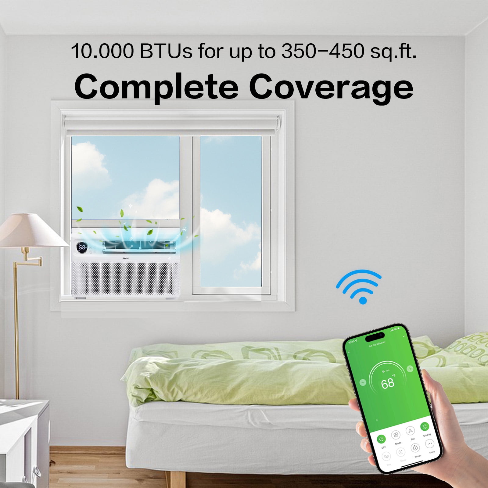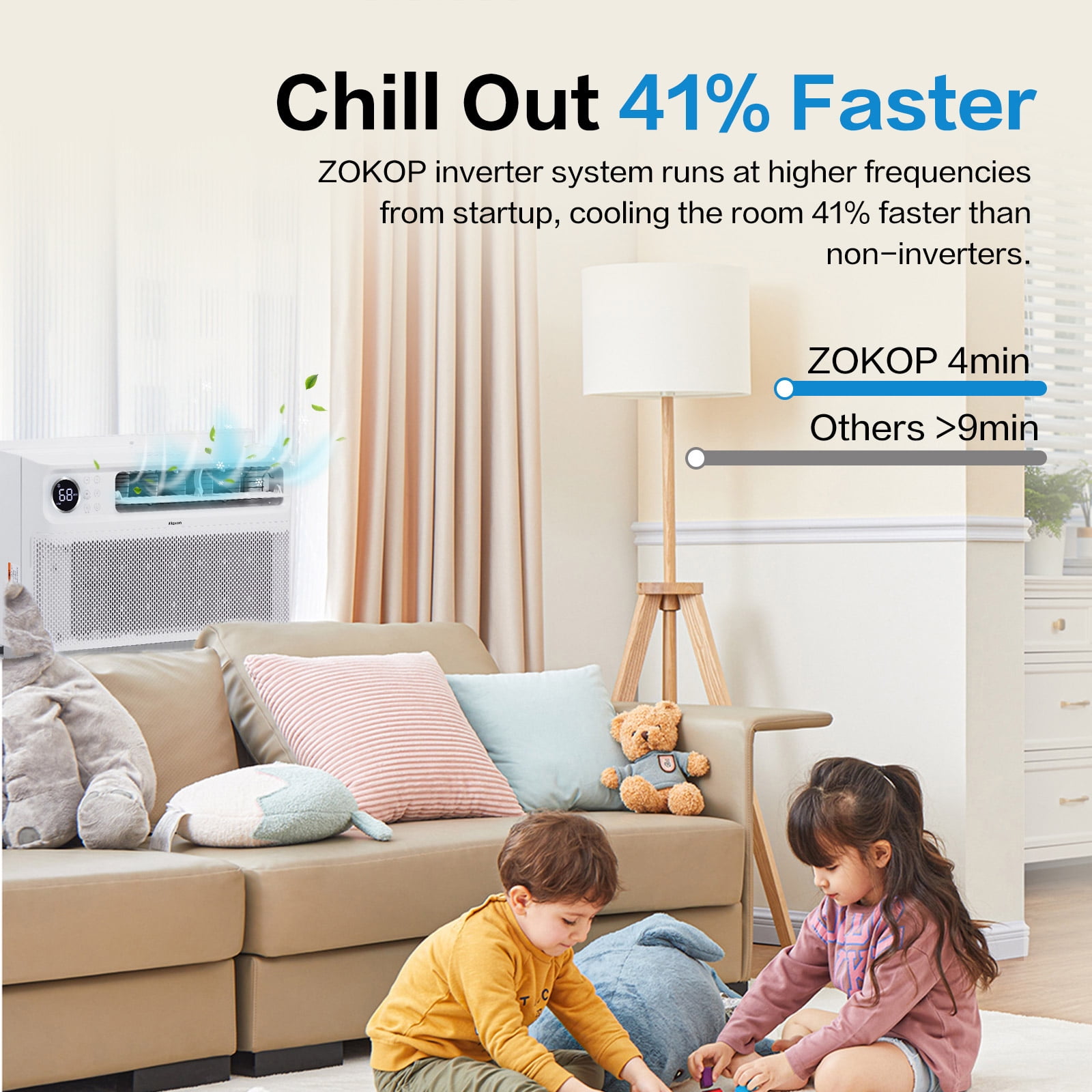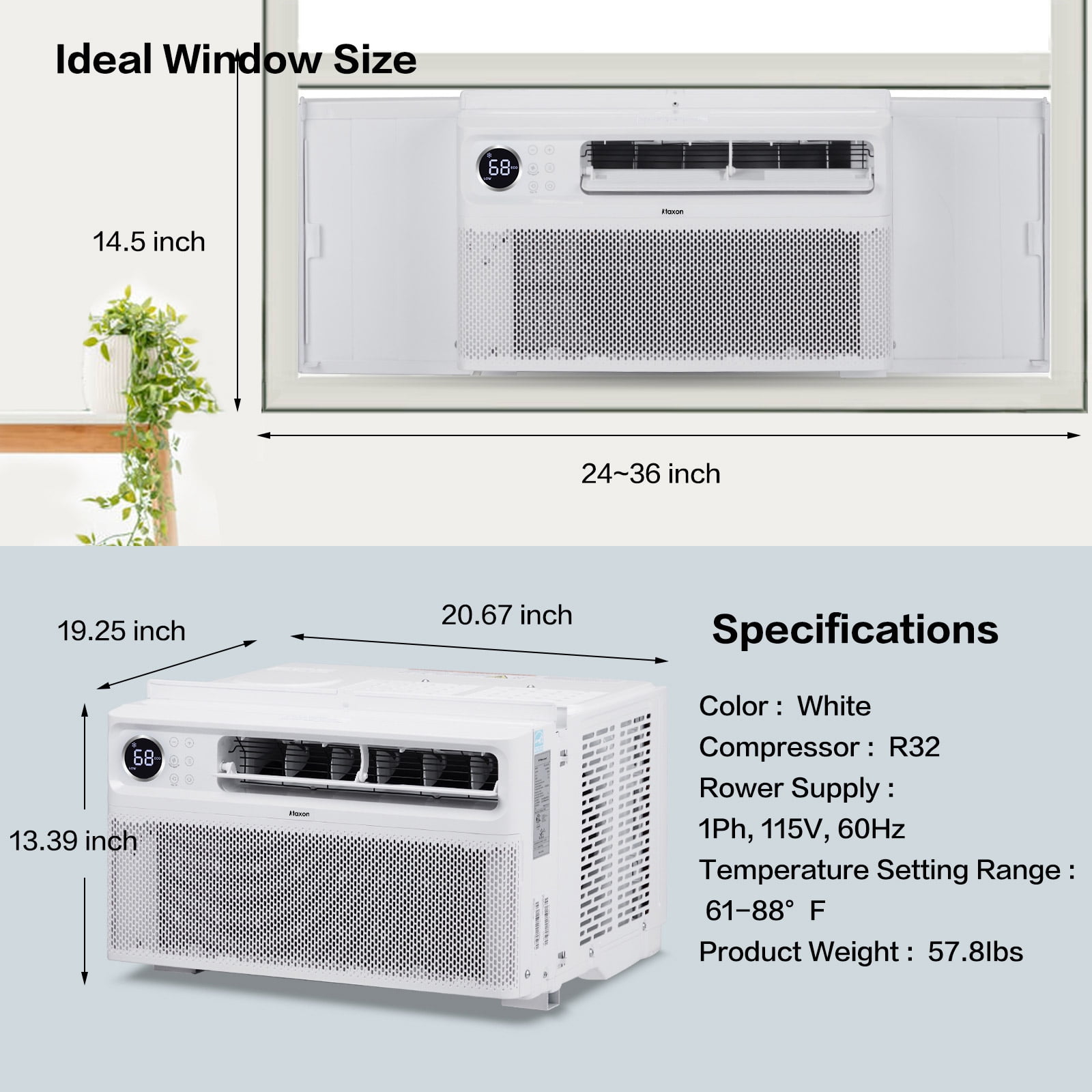 Introductions: Experience a new level of comfort and efficiency with ZOKOP Inverter Window Air Conditioner, where innovative technology meets smart design to create the perfect climate in your home. This window AC unit combines inverter technology with smart, user-friendly controls to offer unparalleled efficiency and convenience. this air conditioner not only promises a serene and comfortable environment but also leads the way in energy conservation, significantly reducing your energy bills and environmental impact. ★Exceptional Energy Efficiency★: With an impressive CEER of 15 and an estimated yearly energy cost of just $41-$61, this AC unit optimizes your energy use, reducing costs and your carbon footprint, making it a smart choice for eco-conscious households. ❄️8000 BTU-Inverter-WIFI❄️ Estimated Yearly Energy Cost: $41 Indoor Noise Level Cooling (Hi/Med/Lo/Mute): 48/45/42/42 dB(A) Application Area (Cooling EPA): 300-350 sq.ft. Operation temp Indoor (Cooling): 61-88°F / 16-31°C Operation temp Outdoor (Cooling): 64-109°F / 18-43°C Window Opening:Width (Min/Max): 24/36inch (61/91.4cm),Height (Min): 14.5inch / 36.8cm Dimensions: (20.67 x 19.25 x 13.39) in / (52.5 x 48.9 x 34) cm (L x W x H) Net Weight: 56.2 lbs / 25.5 kg ❄️10000 BTU-Inverter-WIFI❄️ Estimated Yearly Energy Cost: $50 Indoor Noise Level Cooling (Hi/Med/Lo/Mute): 51/47/42/42 dB(A) Application Area (Cooling EPA): 350-450 sq.ft. Operation temp Indoor (Cooling): 61-88°F / 16-31°C Operation temp Outdoor (Cooling): 64-109°F / 18-43°C Window Opening:Width (Min/Max): 24/36inch (61/91.4cm),Height (Min): 14.5inch / 36.8cm Dimensions: (20.67 x 19.25 x 13.39) in / (52.5 x 48.9 x 34) cm (L x W x H) Net Weight: 57.8 lbs / 26.2 kg ❄️12000 BTU-Inverter-WIFI❄️ Estimated Yearly Energy Cost: $61 Indoor Noise Level Cooling (Hi/Med/Lo/Mute): 55/49/42/42 dB(A) Application Area (Cooling EPA): 450-550 sq.ft. Operation temp Indoor (Cooling): 61-88°F / 16-31°C Operation temp Outdoor (Cooling): 64-109°F / 18-43°C Window Opening:Width (Min/Max): 24/36inch (61/91.4cm),Height (Min): 14.5inch / 36.8cm Dimensions: (20.67 x 19.25 x 13.39) in / (52.5 x 48.9 x 34) cm (L x W x H) Package Includes: 1 x Air Conditioner 1 x Remote Control 1 x Window Installation Kit 1 x Set of Screws
