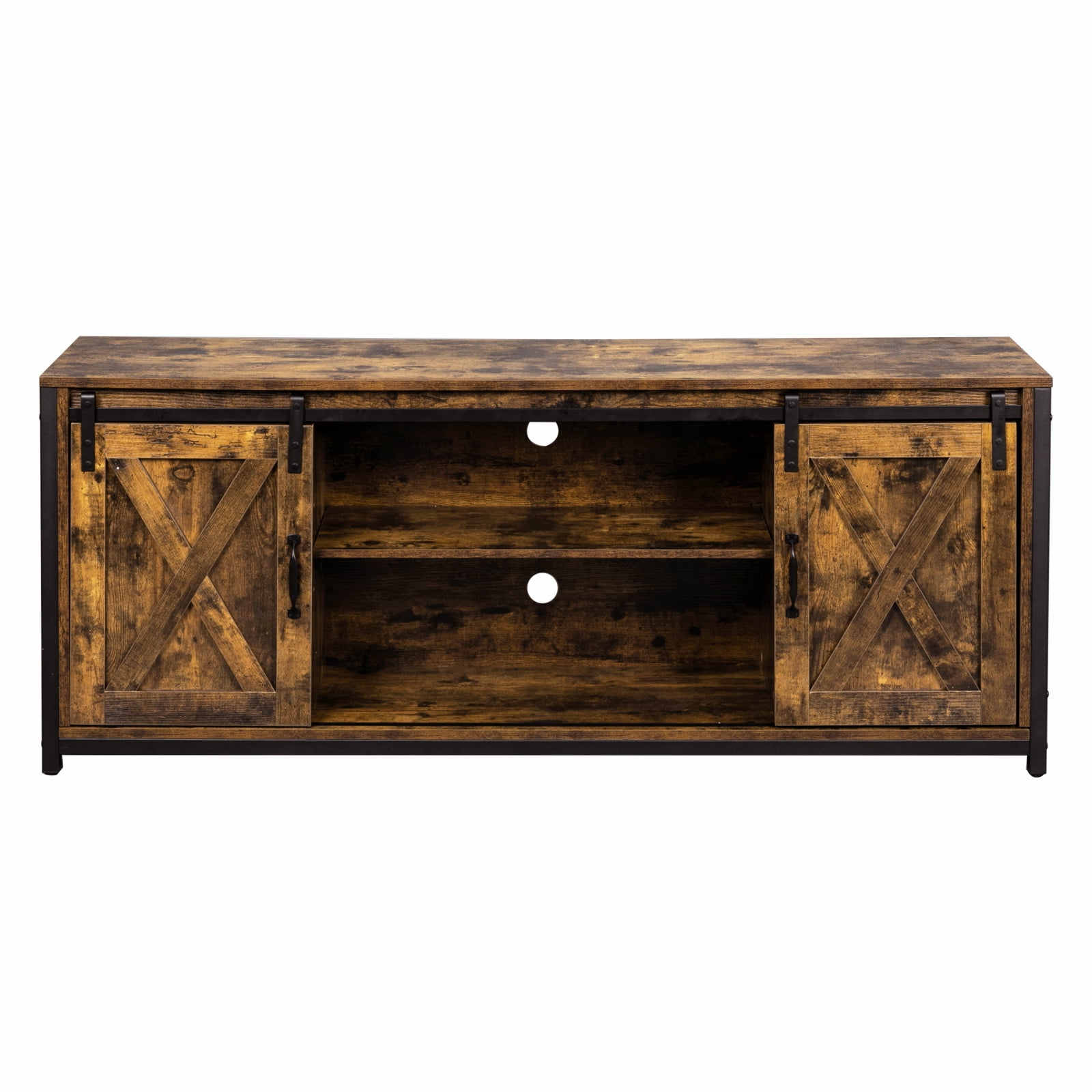 Ktaxon Farmhouse TV Stand for 65” TVs, Rustic Natural Brown Entertainment Center, Barn Doors TV Cabinet with Storage Cubes Furniture