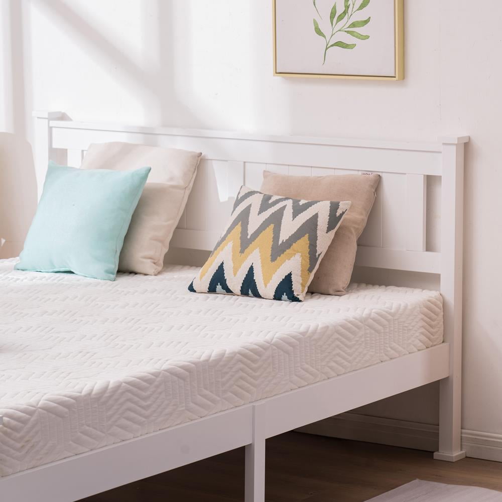 Introductions: This Bed is made from quality solid pine wood with hardwood slats. It’s built to last. Its headboard offers understated visual appeal with its geometric pattern of large rectangles, created by vertical and horizontal stitching. Mattress can be put on the slats directly,abandon box springs,you can save more money and time. So don’t hesitate, it’s a good choice for you! Features: STRONG: Made from solid pine wood with hardwood slats. It’s built to last. MODERN STYLE: A distinctively rectangular shape with clean lines and gently curved right angles give the handsome bed a refined sense of contemporary style. Even more, its headboard offers understated visual appeal with its geometric pattern of large rectangles, created by vertical and horizontal stitching NO BOX SPRING NEEDED: Mattress can be put on the slats directly,abandon box springs,you can save more money and time EASY TO ASSEMBLE: Headboard ,footboard,instructions and all accessories are included,no additional tools required NOTES: It is recommended that the installation should not be too tight to adjust easily. After the structure is installed, firm the interface for more stability Warm Prompt: Please confirm the product size before purchasing, to make sure the size of our product is in line with your requirements After-sale Service: Since the satisfaction of customer is always our primary concern,so if you have any problem when using this product please don’t hesitate to contact us first. Specifications: 1. Material: Wood 2. Color: White 3. Dimensions: (78.54 x 57.48 x 19.69-37.79)” / (199.5 x 146 x 50-96)cm (L x W x H) 4. Load-bearing: 440.92lb / 200kg 5. Weight: 56.2lb / 25.5kg 6. Bed Size: Full Package Includes: 1 x Bed