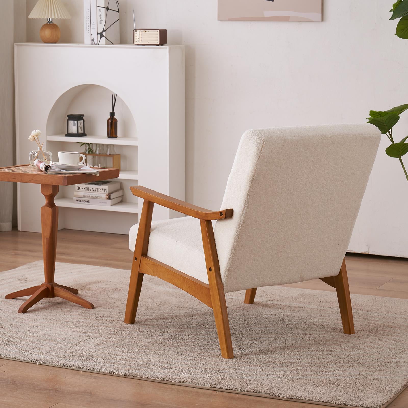 Ktaxon Mid-Century Modern Arm Chair with Solid Wood Frame,Teddy Velvet Fabric Club Chair,Beige