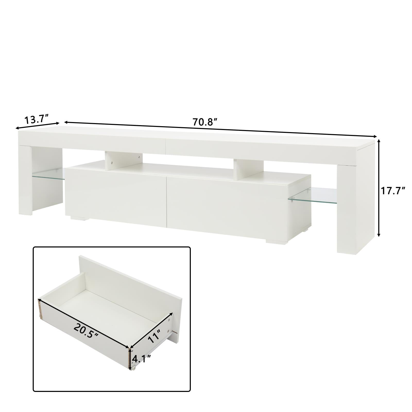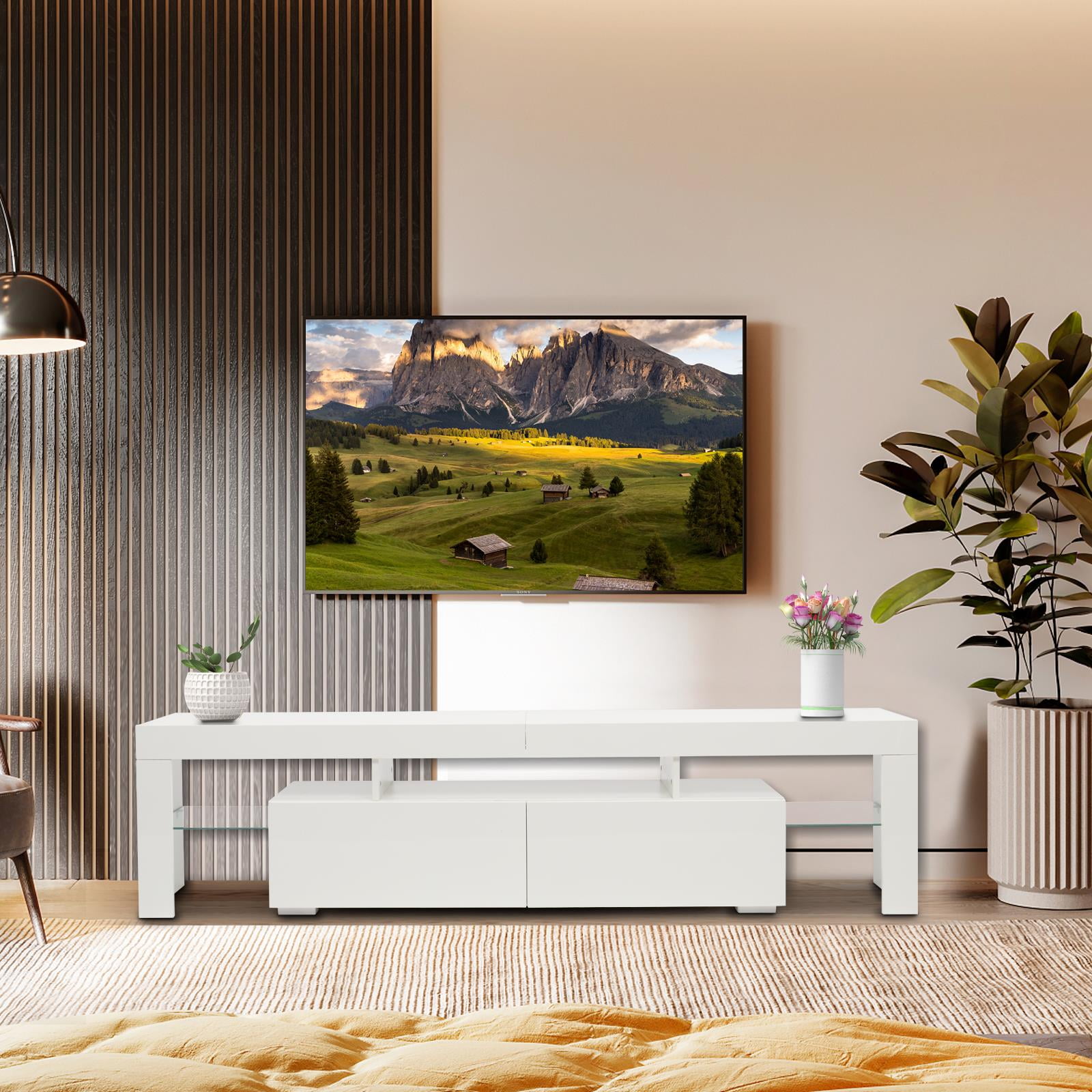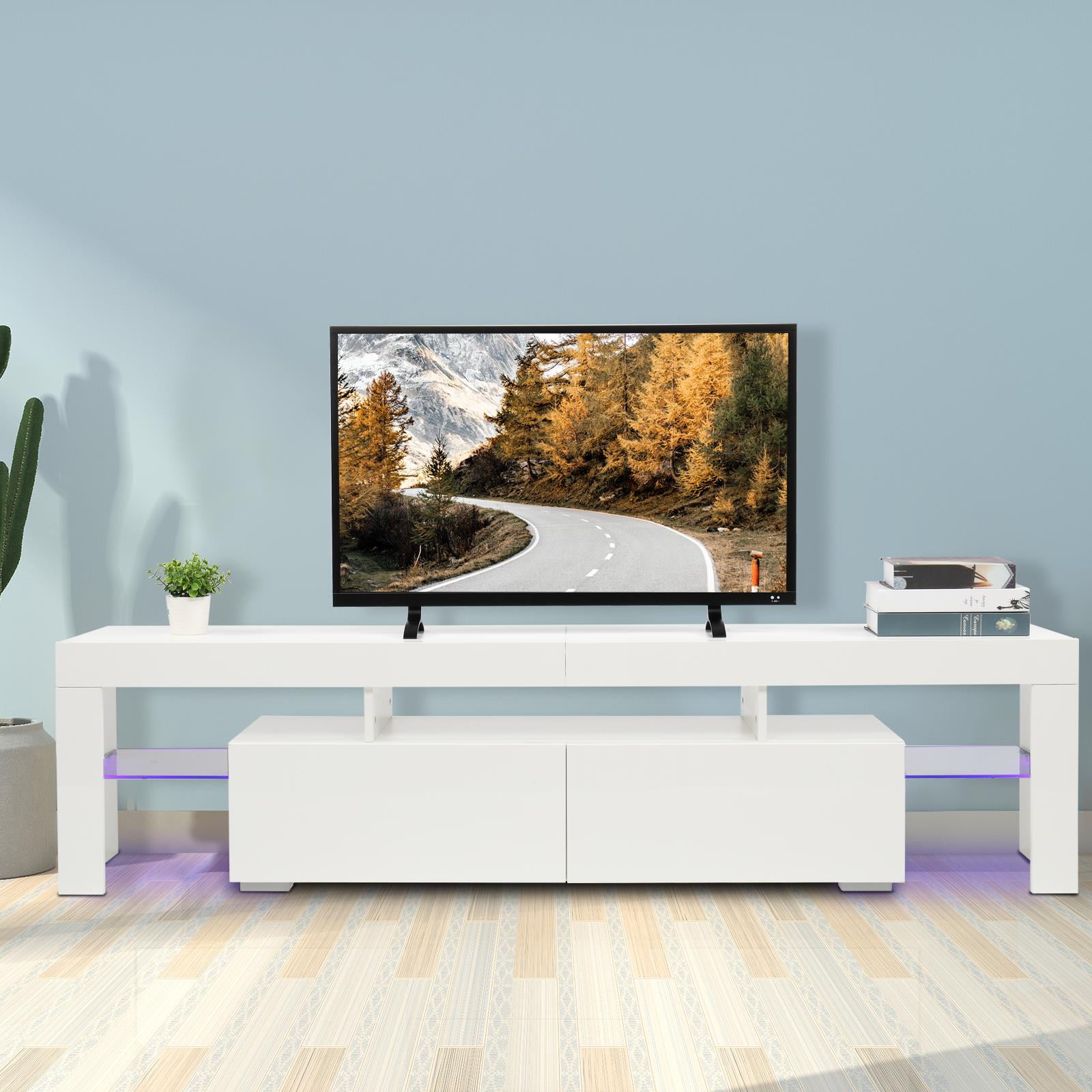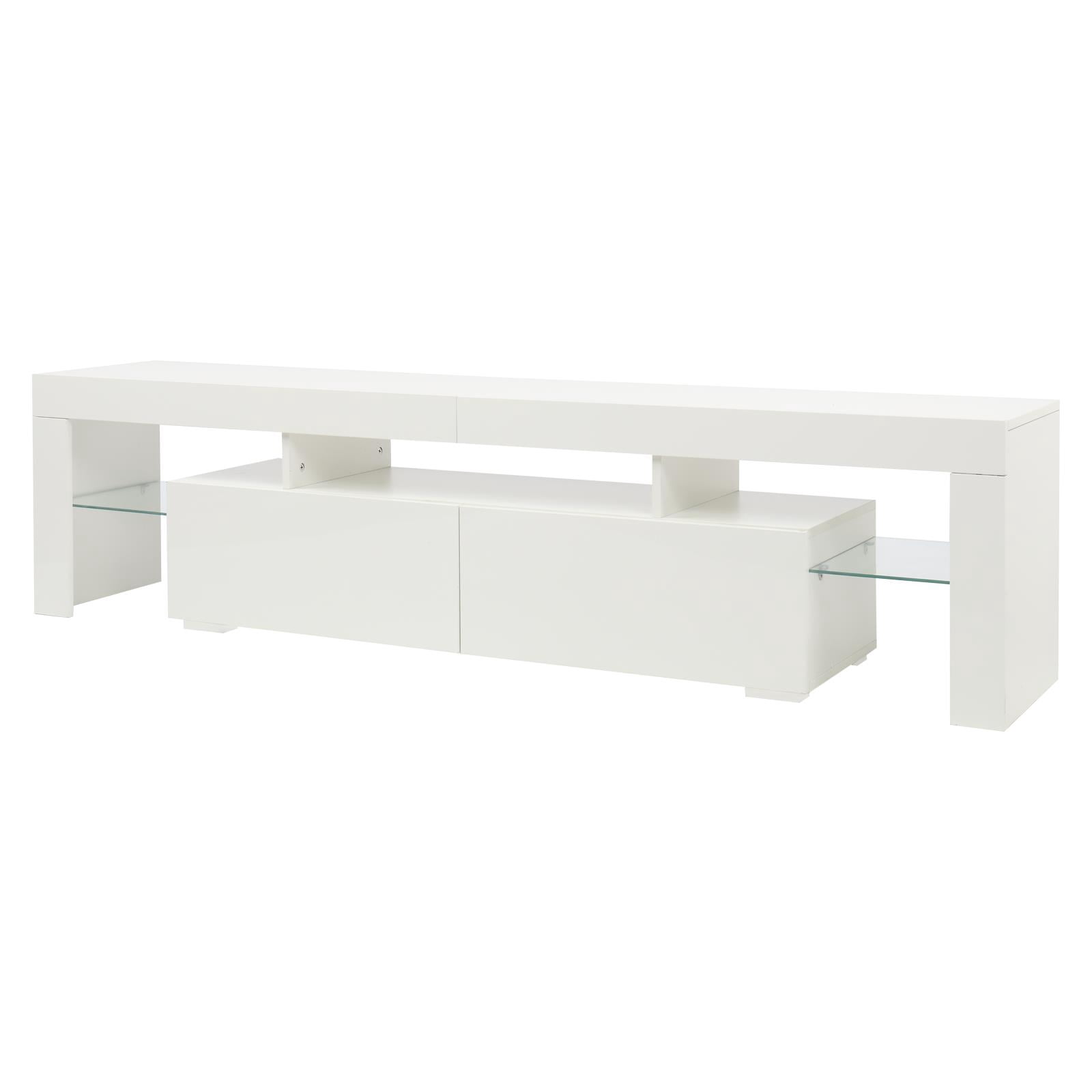 Ktaxon Modern LED TV Stand for up to 80” TVs, Unit Cabinet Stand with 2-Drawers, White