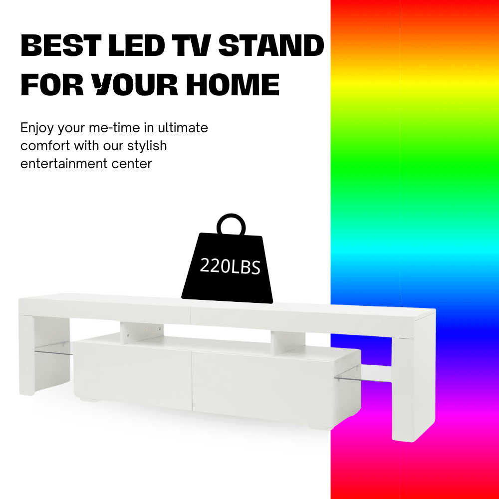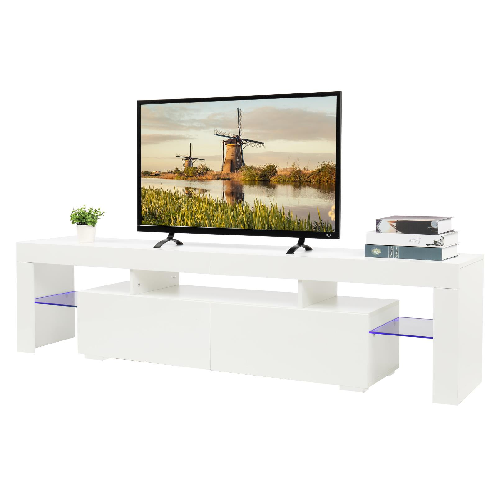 Ktaxon Modern TV Stand for up to 60” TVs, Media Console Cabinet LED Shelves with 2 Drawers for Living Room Storage Entertainment Center, White