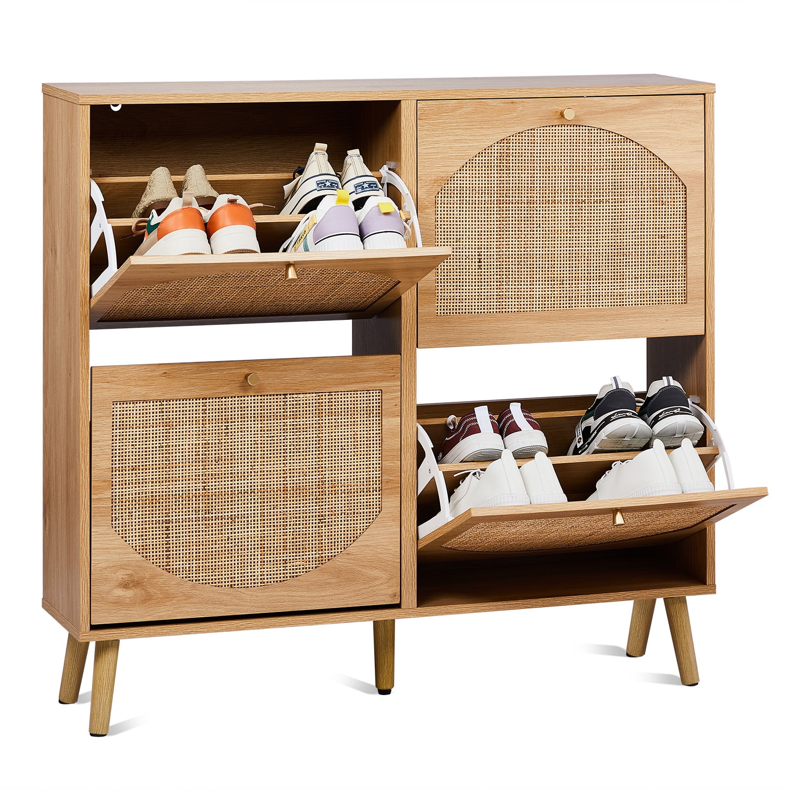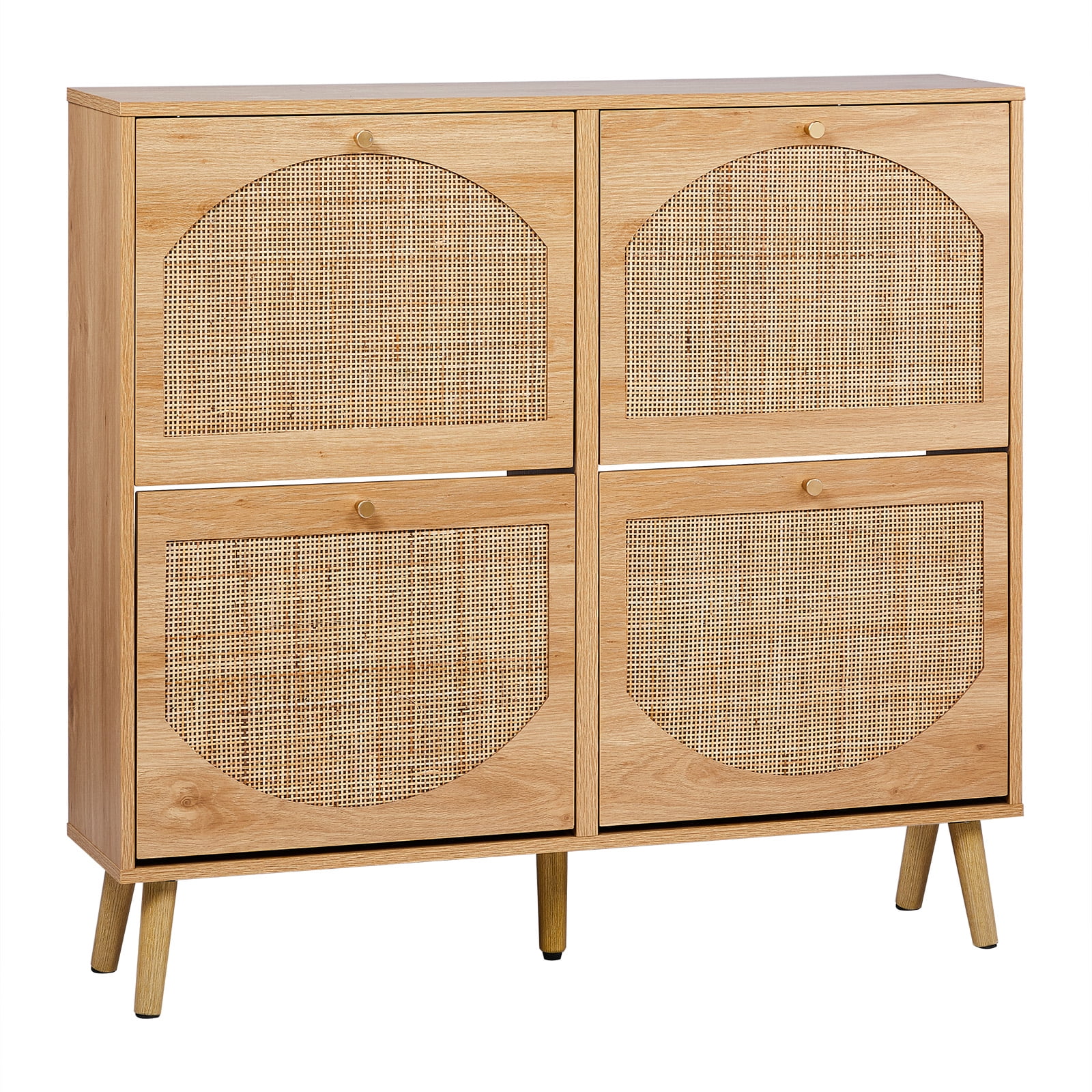 Ktaxon Rattan Shoe Cabinet with 4 Flip Drawers 24 Pairs,Narrow Shoe Storage Cabinet for Entryway, Bedroom, Living Room, Apartment, Natural