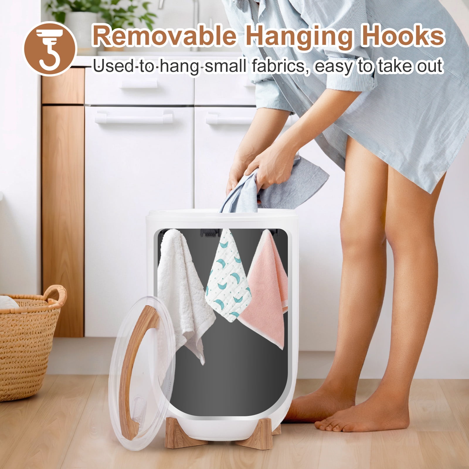 Introductions: Indulge in the luxurious warmth of this 20L large towel warmer bucket. It’s perfect for heating up two large 40-inch by 70-inch bath towels, while its secure timer setting automatically shuts off after 15, 30, 45, or 60 minutes. Boasting a reliable heating system that disperses heat evenly to avoid cold spots and a cord wrap at side of the bucket for a safe and clean bathroom experience, this stylish towel warmer is the best way to add a touch of joy and warmth to your day.You deserve the best! Specifications: 1.Model: HSTW-20 2.Dimensions with Bases:20.5″ *12.6″ *12.6″ (H*W*D) 3.Rated voltage:120V AC 60HZ 4.Wattage Max:450W 5.Item Weight:8.5 lbs. 6.Weight with bases: Approx.10.2lbs. 7.Depth:12″/ 304.8 mm 8.Volume:5.3 gal. / 20 L 9.Source of power:Electric Cord 10.Cord length:83″ / 2108 mm 11.Cord type:USA / Canada / Japan / Mexico 12.Highlight:15/30/45/60 minute timer with automatic shut-off 13.Cord storage at side Package Includes: 1 x 20L towel warmer with power cord 1 x Transparent cover with wooden handle 1 x Romote control 4 x detachable hooks 1 x instructions manual Warning: 1.Burn Hazard Caution: Avoid direct contact with hot inner surface when taking items in and out. Touching the surface while hot may cause burns. Allow the unit to cool down before moving or storing it. 2.Moisture may discolor the inner tub of the towel warmer, this does not affect the performance. 3.FOR ADULT USE ONLY. FOR DRY FABRIC ITEMS ONLY. FOR HOUSEHOLD USE ONLY. 4.All OF THE SAFETY AND OPERATING INSTRUCTIONS SHOULD BE READ,ADHERED TO AND FOLLOWED BEFORE THE UNIT IS OPERATED.