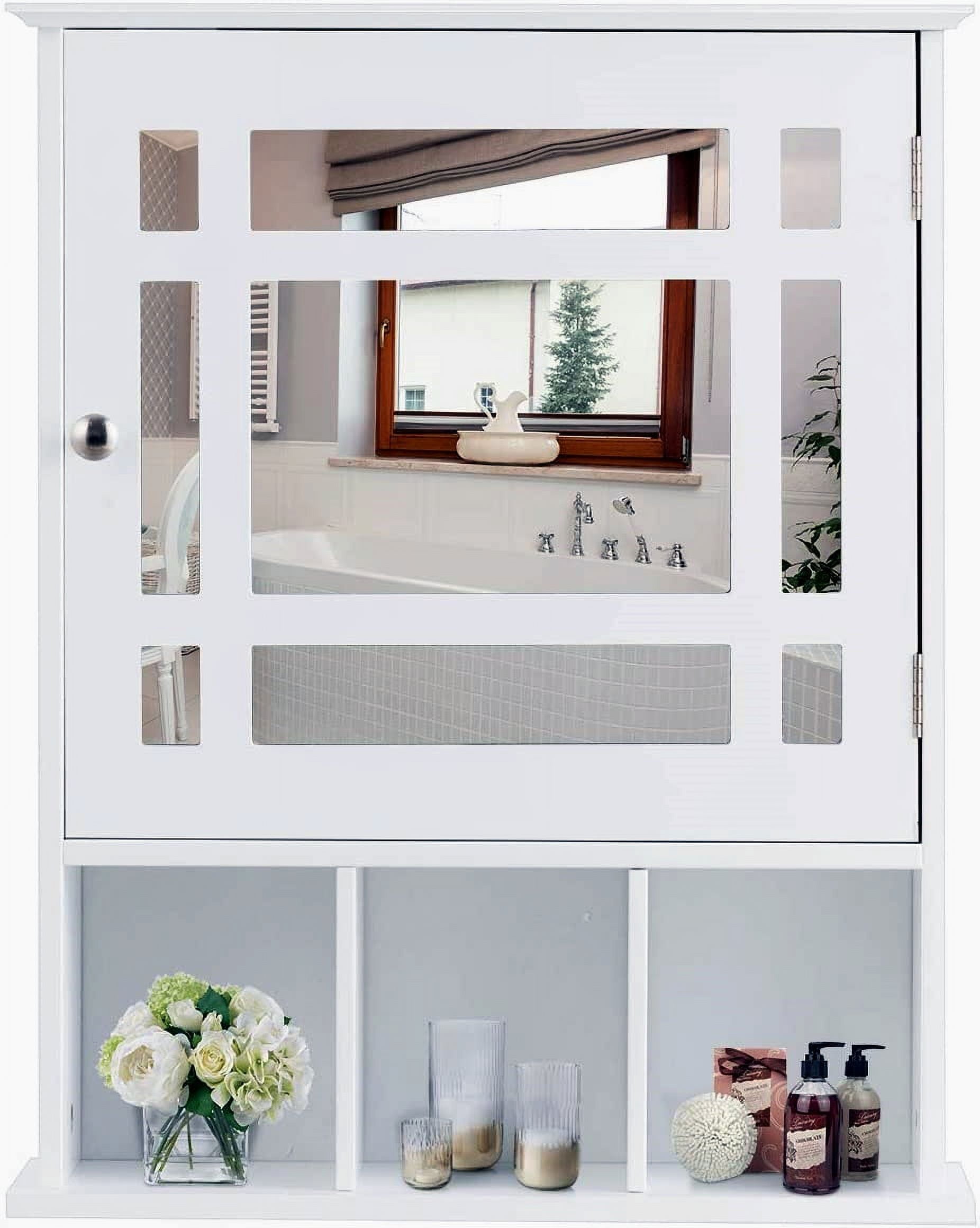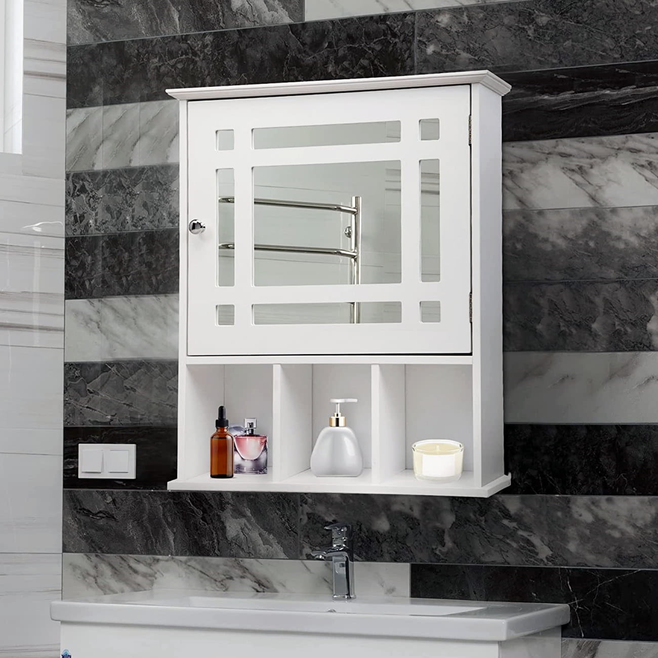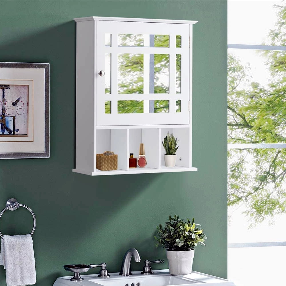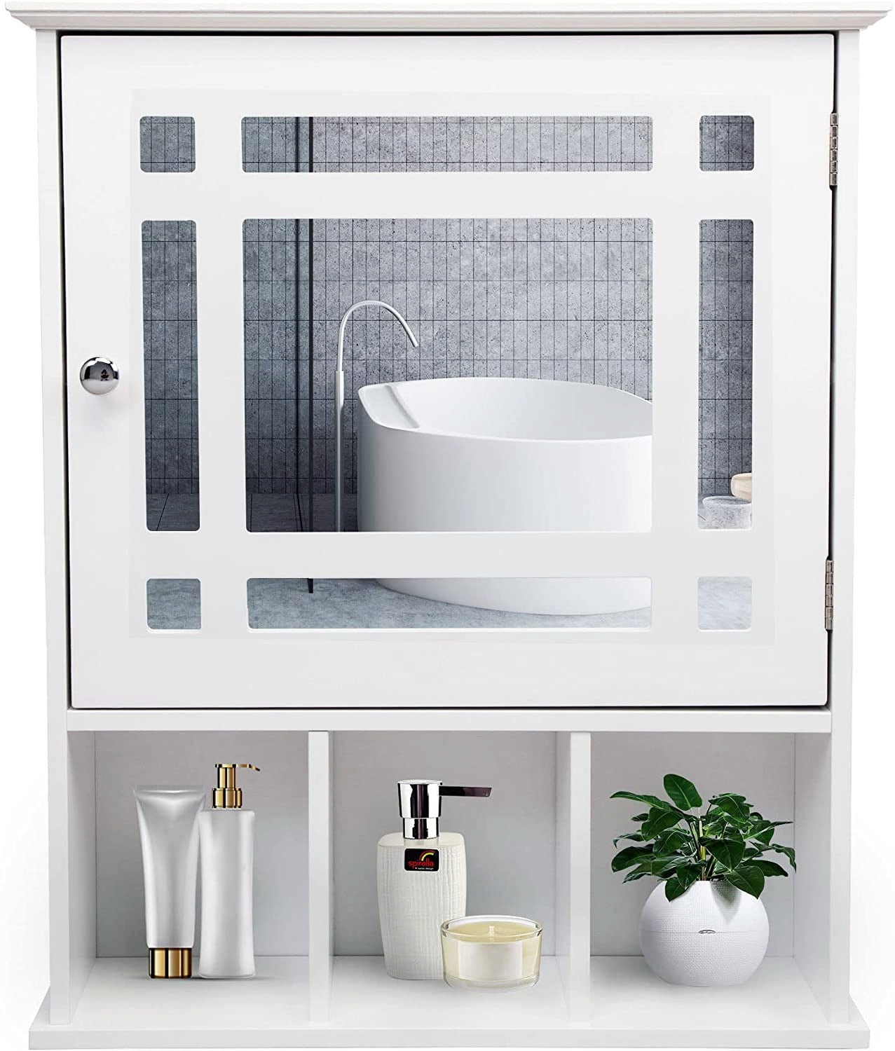 Ktaxon Wall Mounted Bathroom Cabinet Medicine Cabinet Storage Cabinet Organizer with Mirror Door and Adjustable Shelf, White