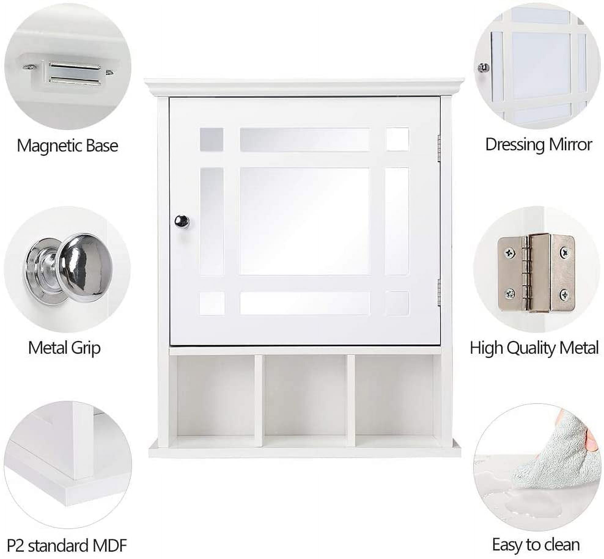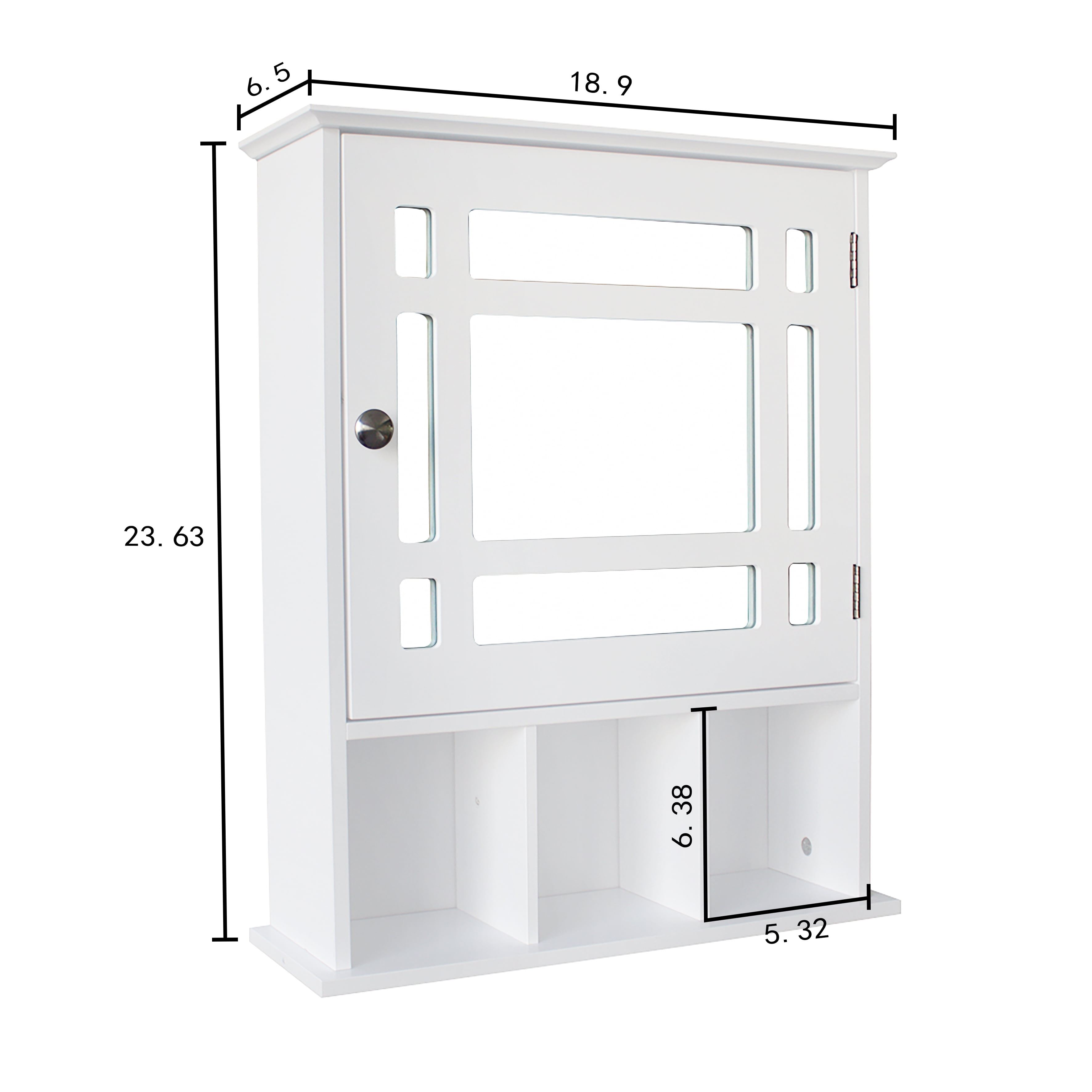 Features: The upper level is an adjustable storage panel Storage cabinet with door There are three storage compartments on the lower level Place various toiletries Bathroom wall cabinets help separate wet and dry areas Bathroom storage cabinet with mirror Easy to assemble Specifications: Dimensions: (18.90 x 6.50 x 23.63)” / ( 48 x 16.5 x 60)cm (L x W x H) Three Compartment Locker Size: (5.32 x 6.38)” / (13.5 x 16.2)cm Color: White Package Includes: 1 x Bathroom Cabinet 1 x Accessory Bag 1 x Instruction Manual
