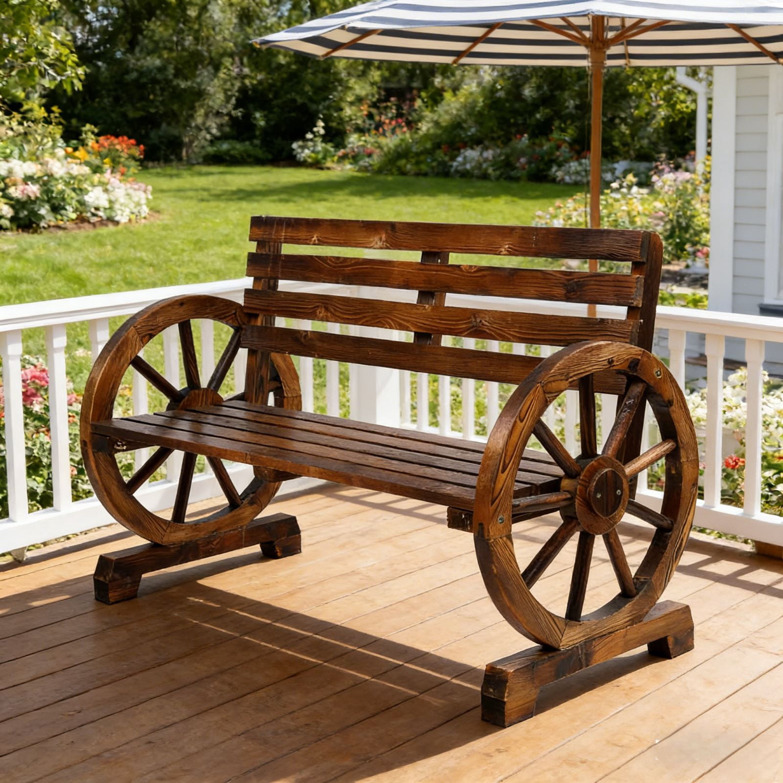 Ktaxon Wood Garden Bench Patio Rustic Fir Wood Wagon Wheel Bench for Outdoors, Brown