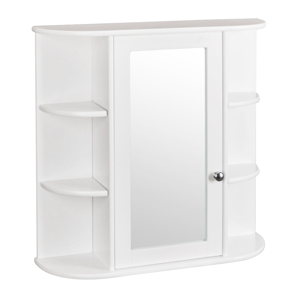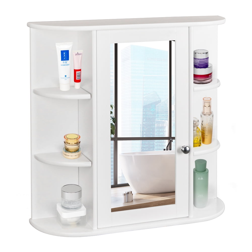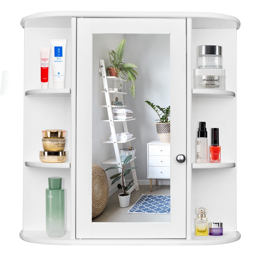 Ktaxon Wooden Bathroom Medicine Cabinet with Mirror Door & 8 Shelves, Wall Mounted Storage Organizer, White
