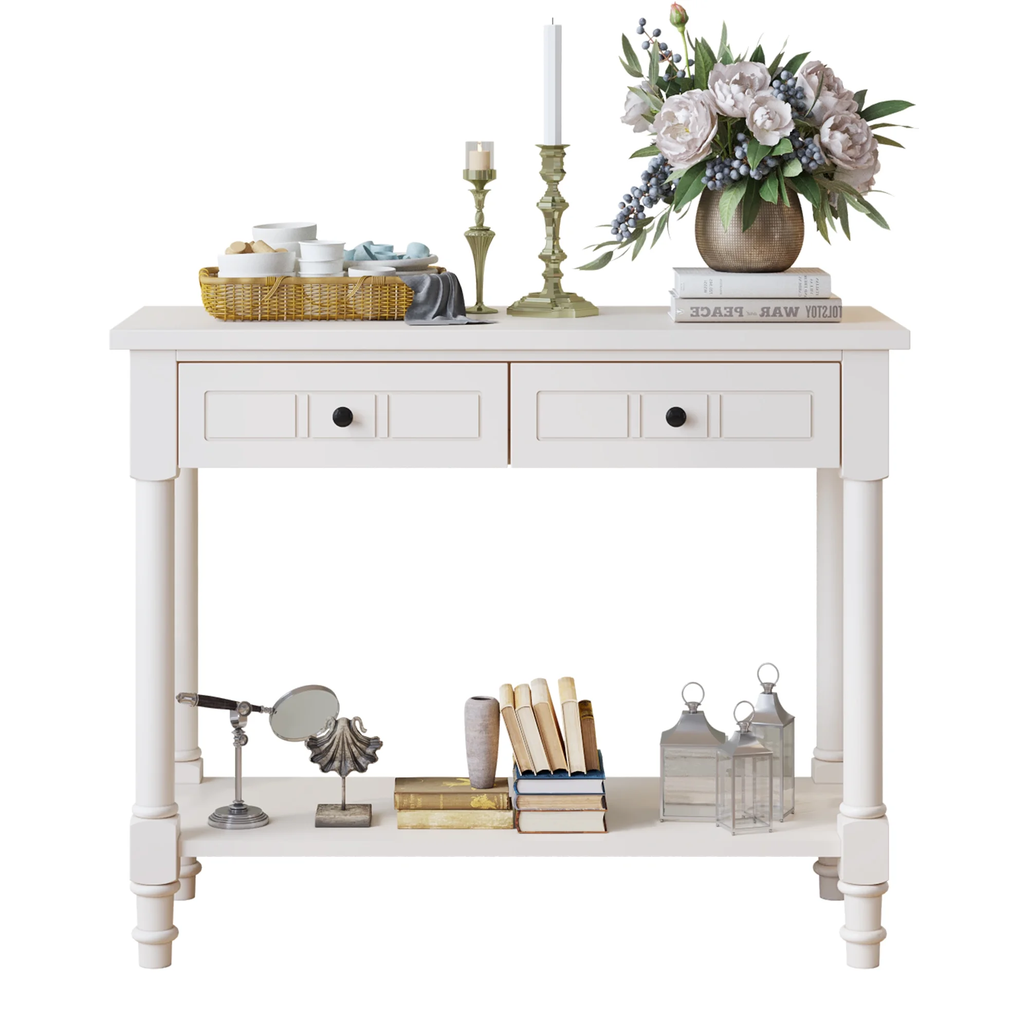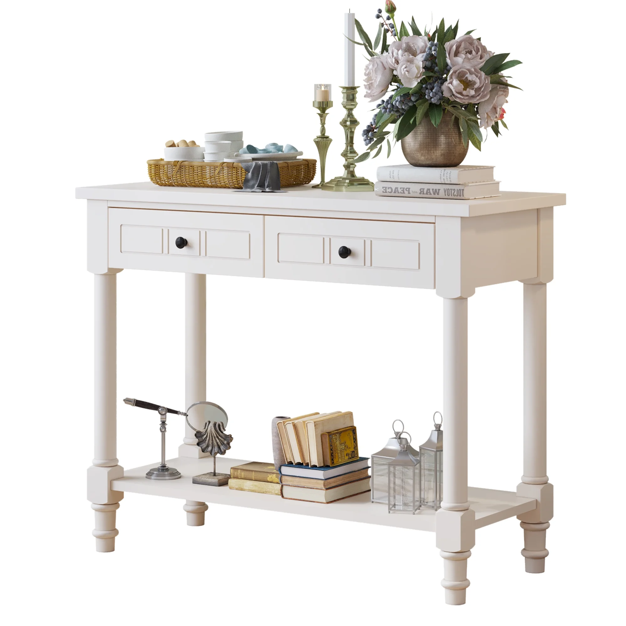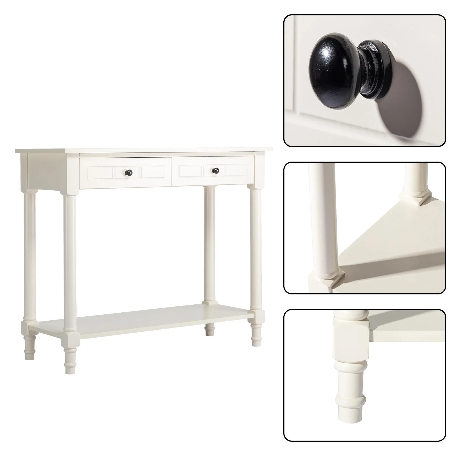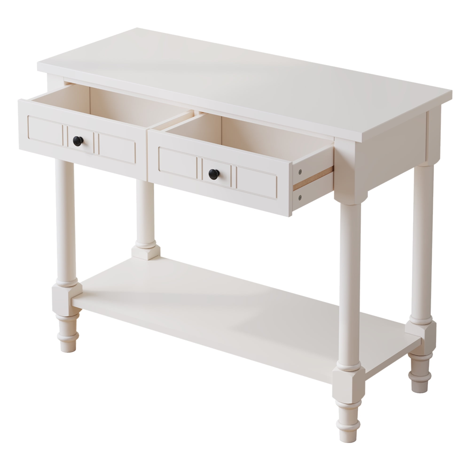 Ktaxon Wooden Console Table with 2 Drawers and Storage Shelf, Sofa Table Entryway Table Side Desk TV Stand for Living Room Hallway Kitchen, Ivory White