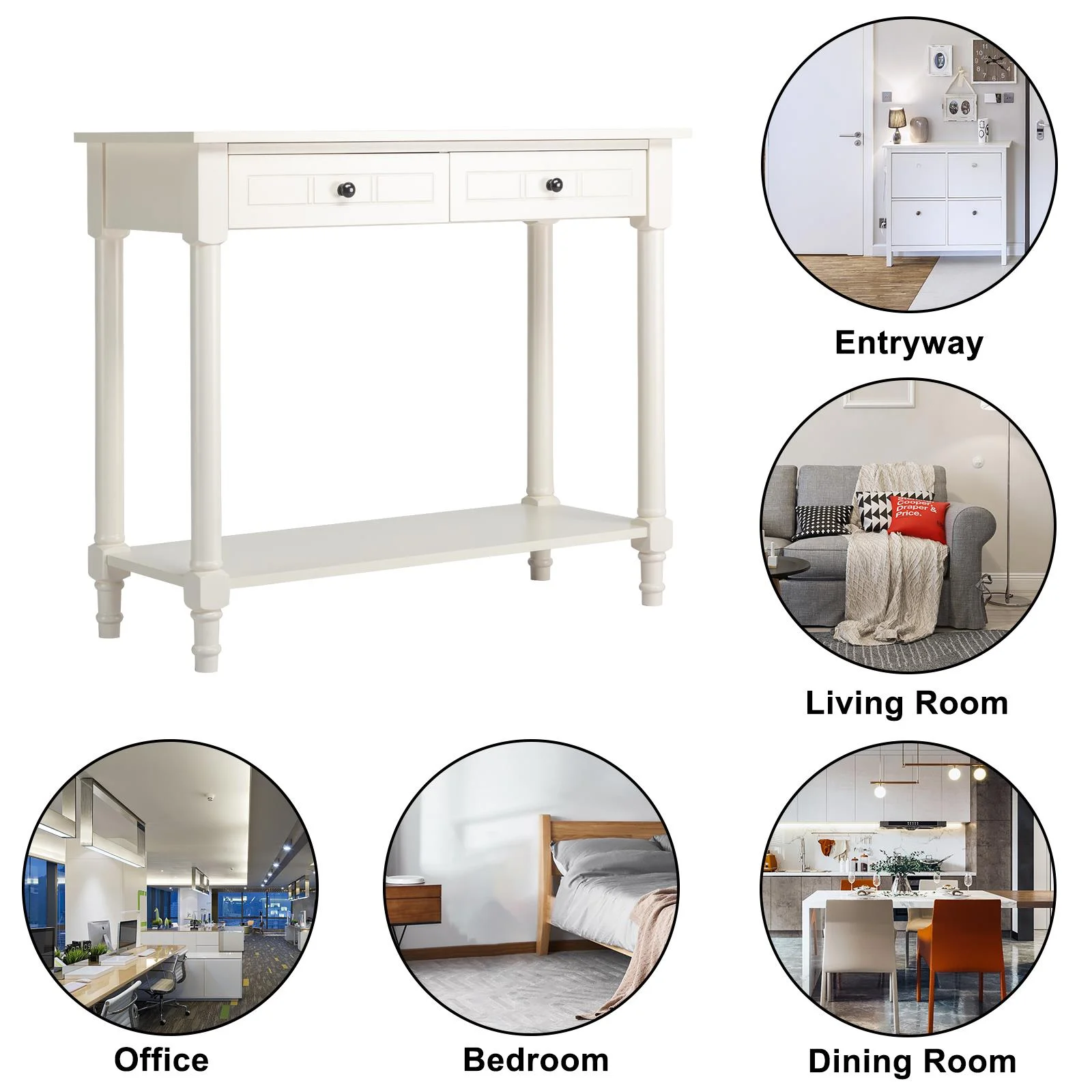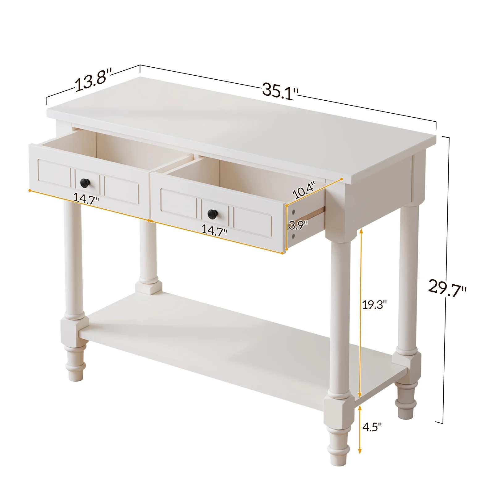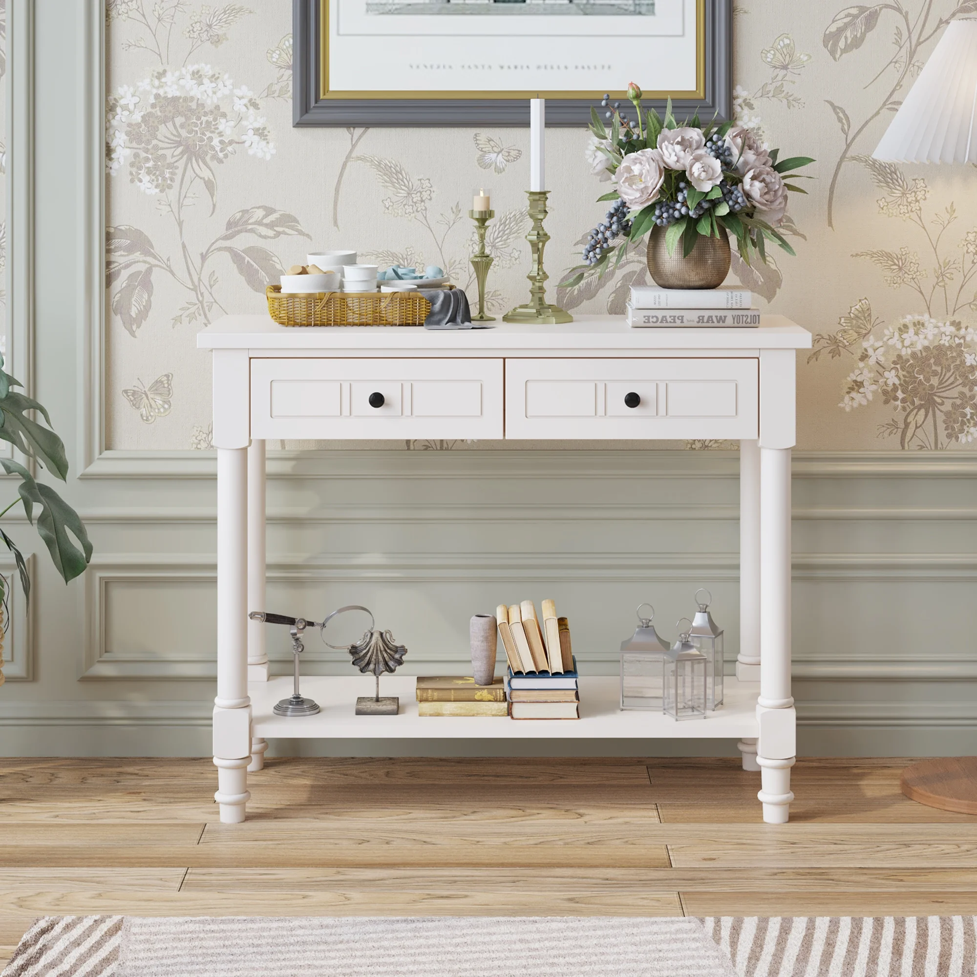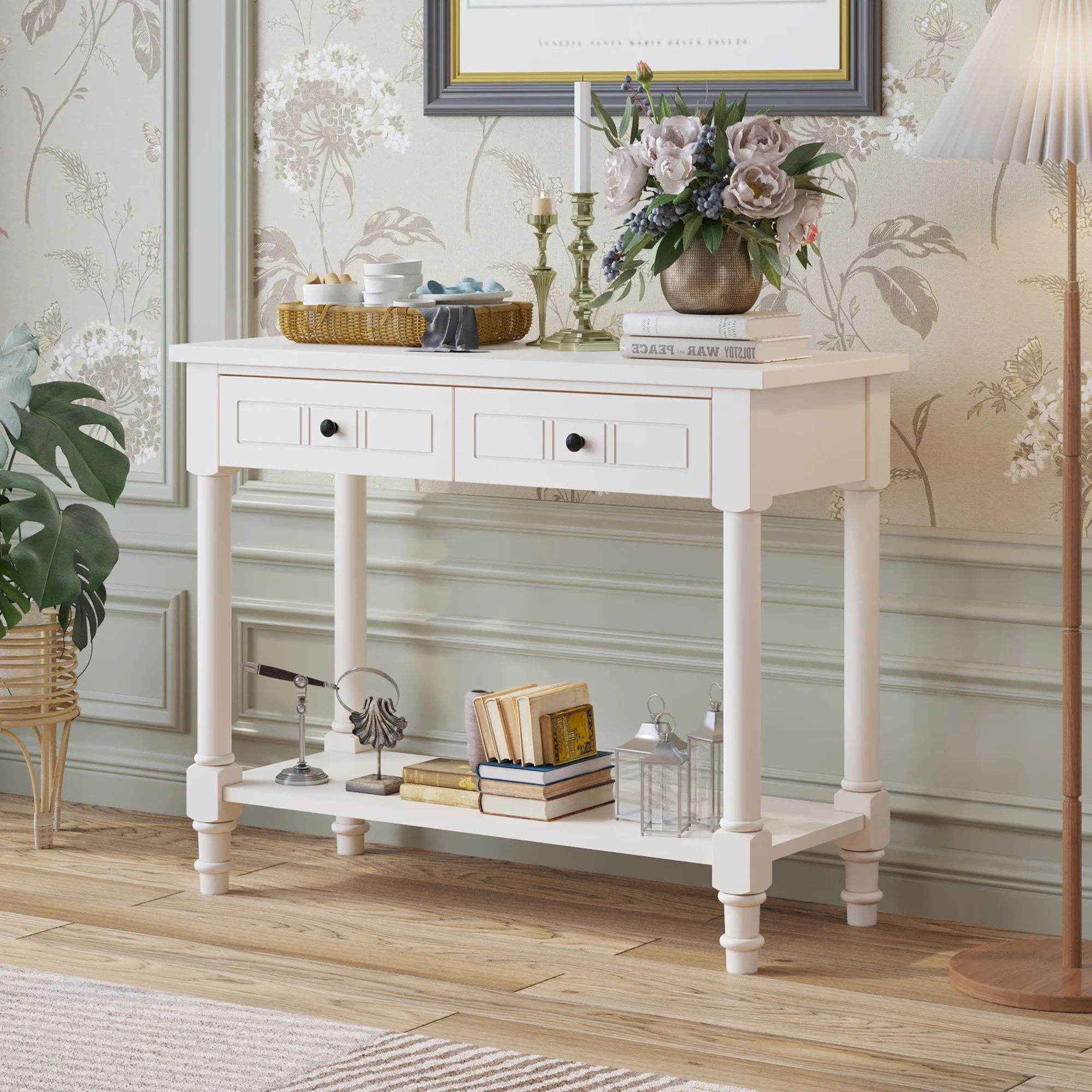 Ktaxon Wooden Console Table with 2 Drawers and Storage Shelf, Sofa Table Entryway Table Side Desk TV Stand for Living Room Hallway Kitchen, Ivory White