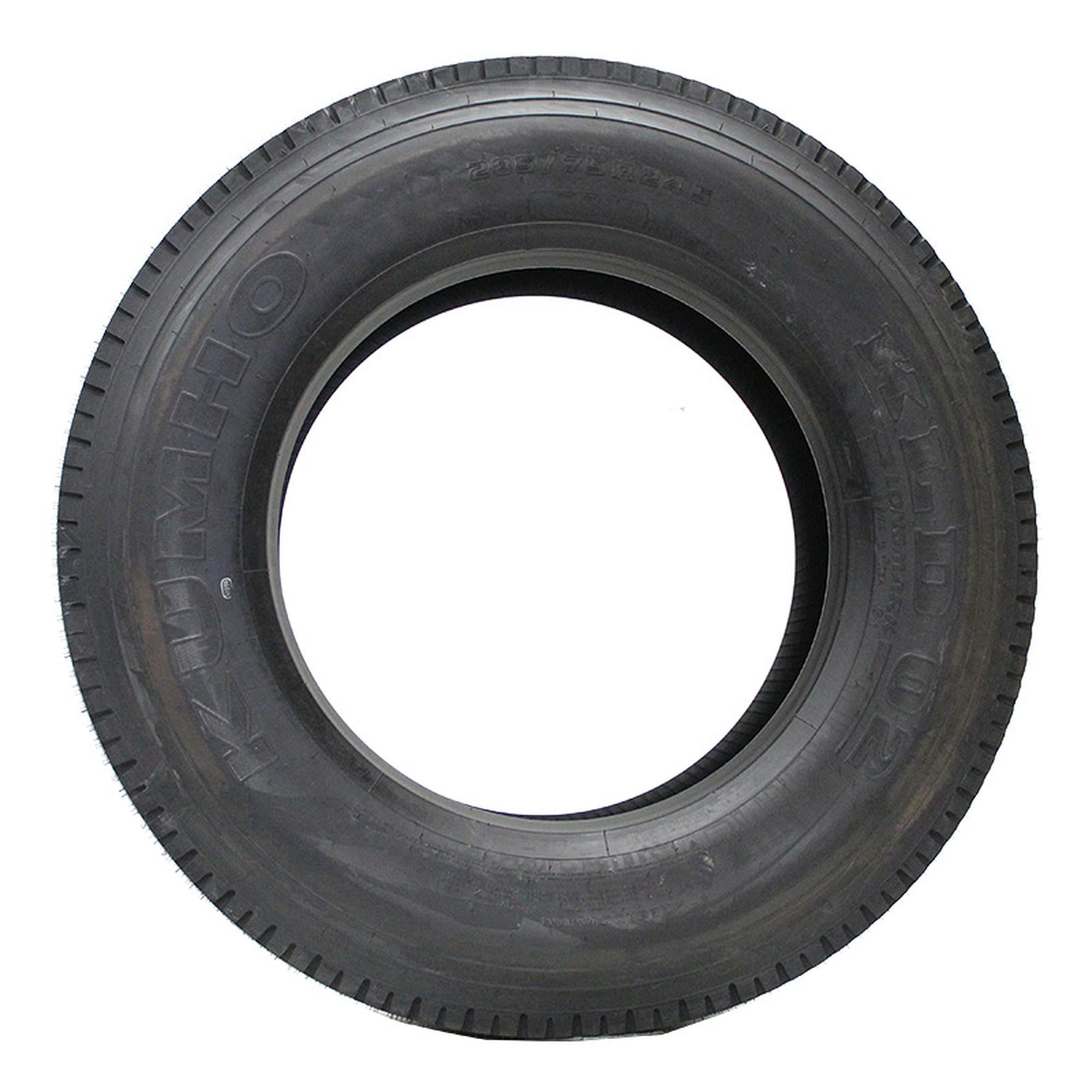 Kumho KLD02(e) 295/75R22.5 144/141M G OVERVIEW A commercial drive tire, the KLD02(e) from Kumho is designed for use on semi-trucks and offers drivers excellent traction in wet and dry conditions along with minimal wear. The special rubber compound of KLD02 (e) enhances durability for a longer tread life, and the tire also features stone ejectors that force rocks, stones, and other debris out of the tread for consistent traction and the protect the casing from damage. Additionally, the aggressive center rib of the KLD02(e) creates excellent traction on any road.