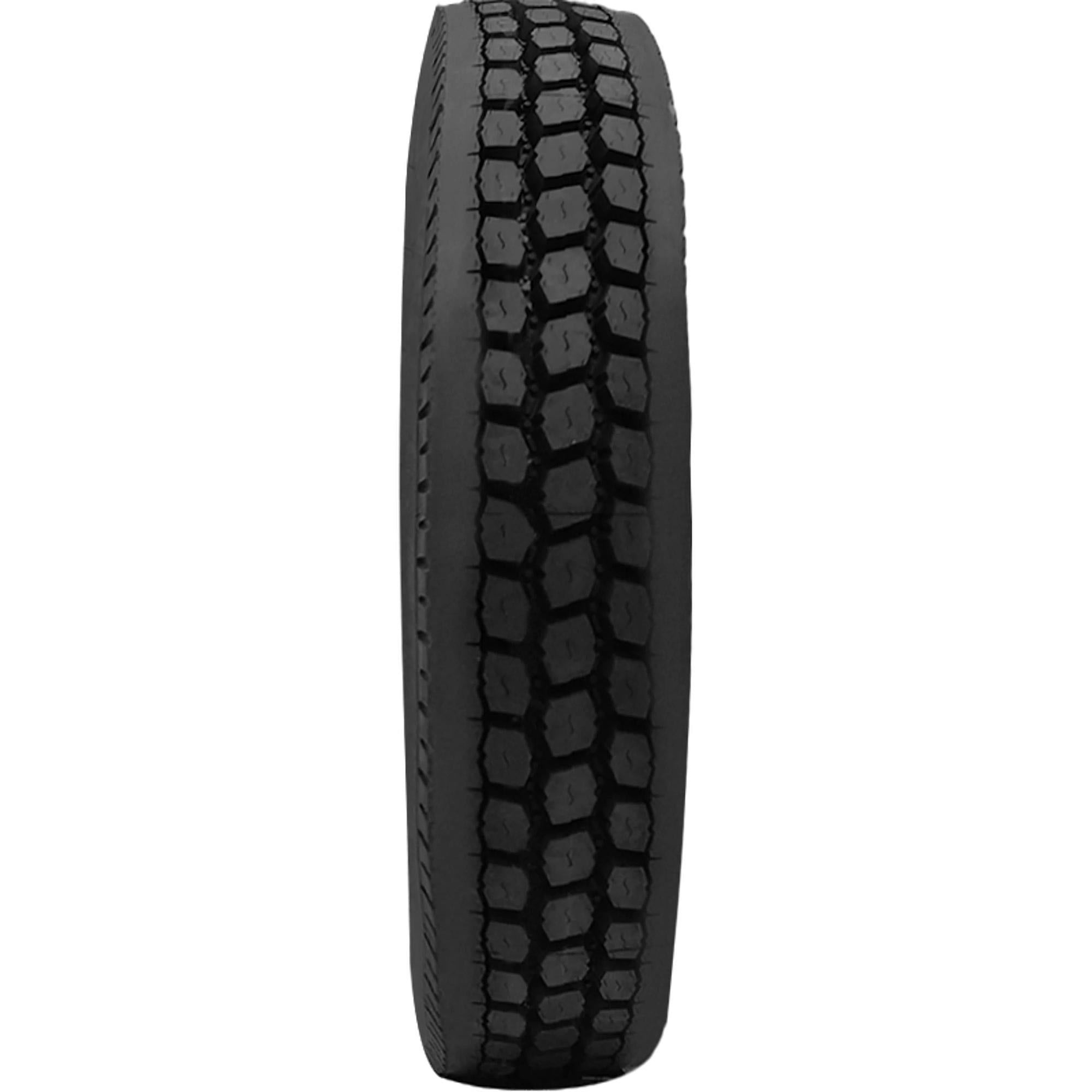 Designed for use on the drive axle of semi-trucks Stone ejectors force rocks, stones, and other debris out of the tread for consistent traction Built with a strong rubber compound that improves durability for a long tread life Aggressive center rib allows for consistent contact with the road to enhance traction Wide grooves funnel water out of the tread to increase wet grip and fend off hydroplaning Size: 295/75R22.5 Load Range: G Product May Vary From Picture Wheel/Rim Not Included
