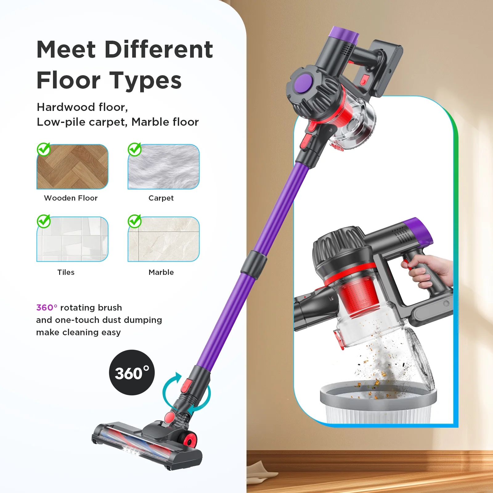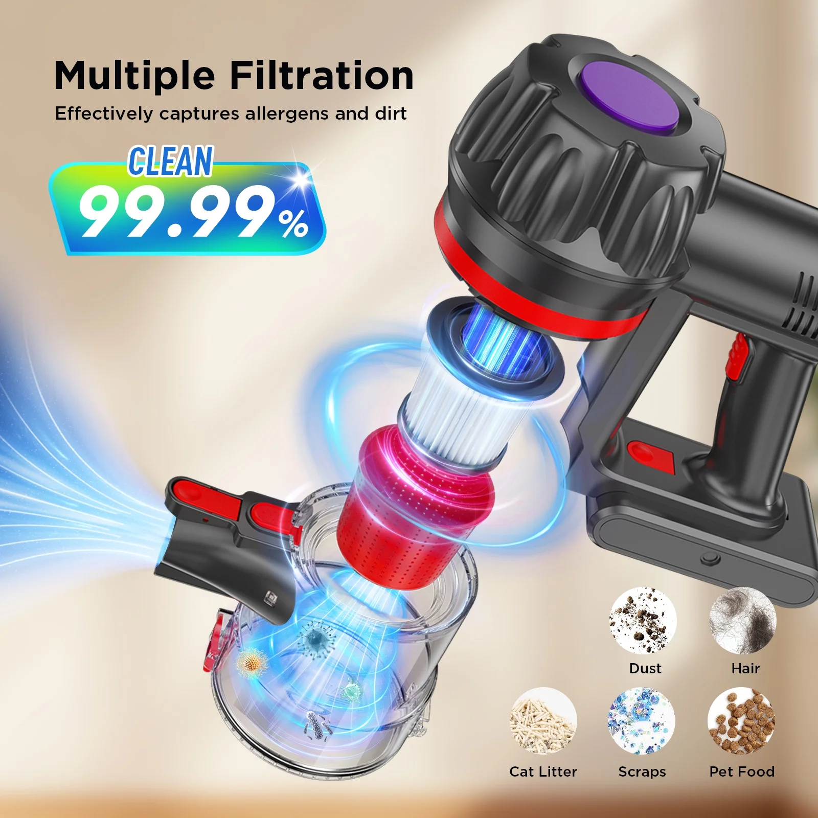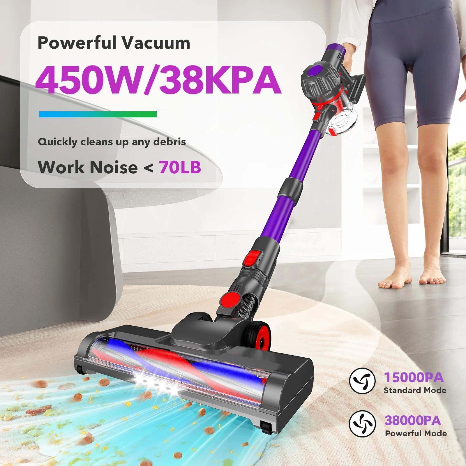 KANFUAQ Cordless Vacuum Cleaner, 38000PA/450W 50min 2500mah for Home Pet Hair Carpet Wood Floor