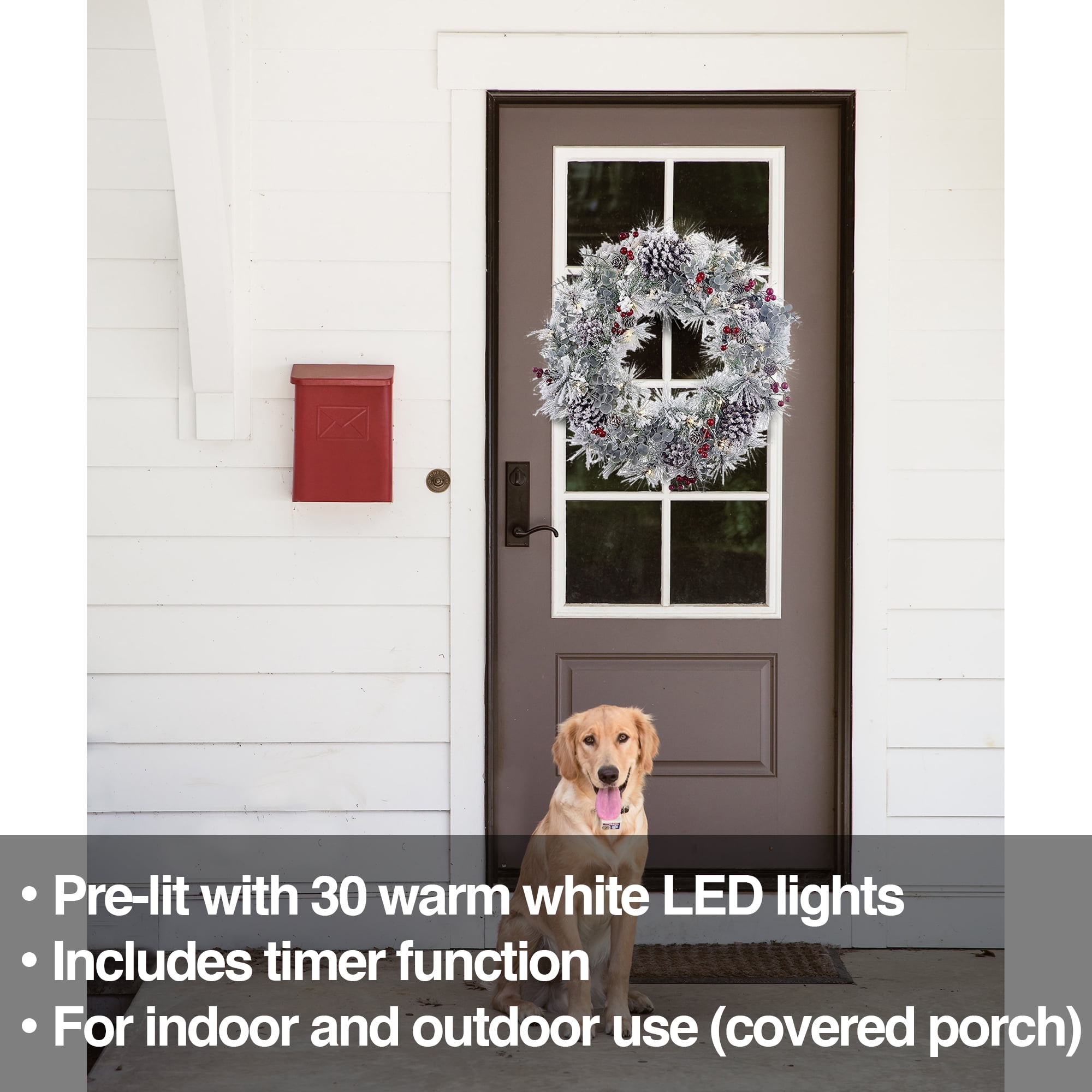 This cheerful wreath supports safe use in covered outdoor areas and offers a long-lasting design that embellishes walls, windows and doors for seasons to come!
