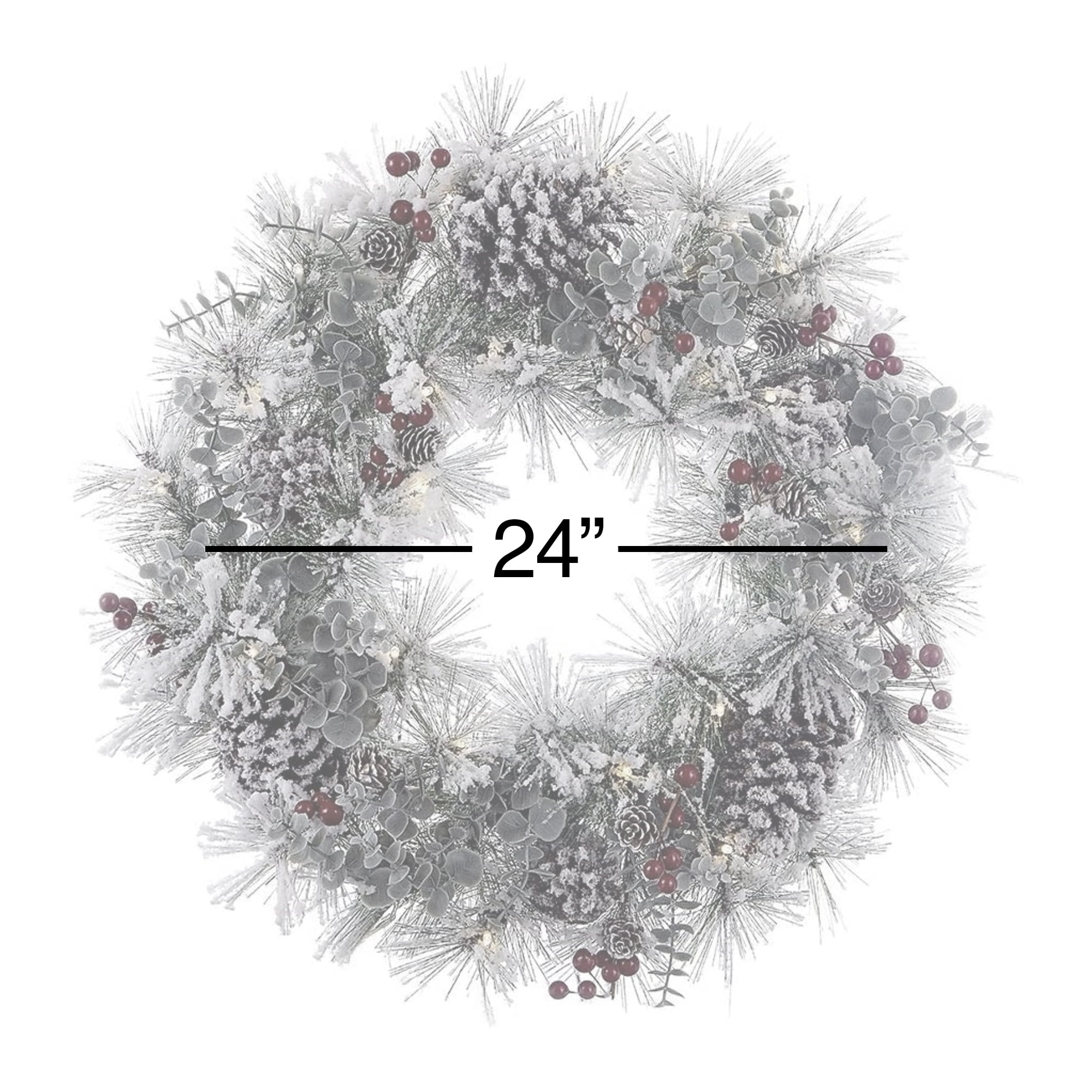 This 24″ battery-operated Holly Berry and Pinecone LED Wreath from Kurt Adler is a quick and easy addition to your holiday décor. Perfect for decorating larger areas of your home, this flocked green wreath is pre-decorated with red holly berries, green eucalyptus leaves, and flocked pinecones. Pre-Lit with 30 warm white LED lights for a bright and merry glow.