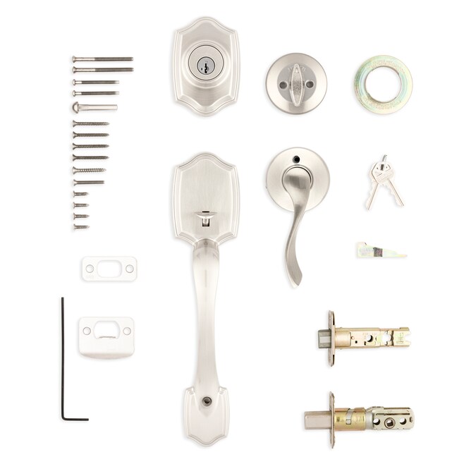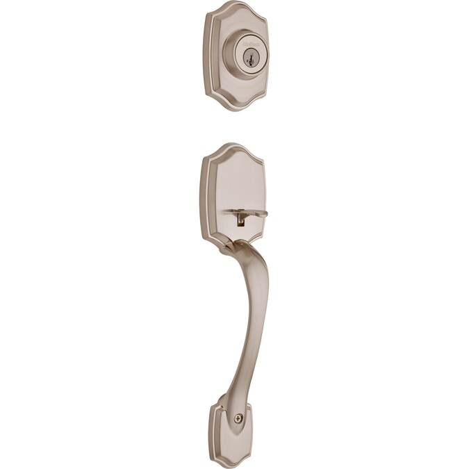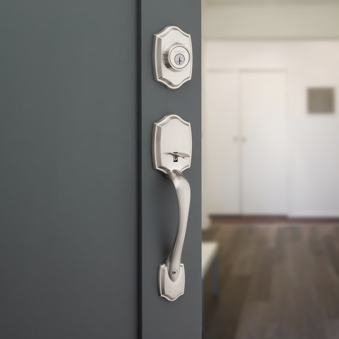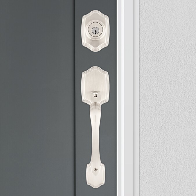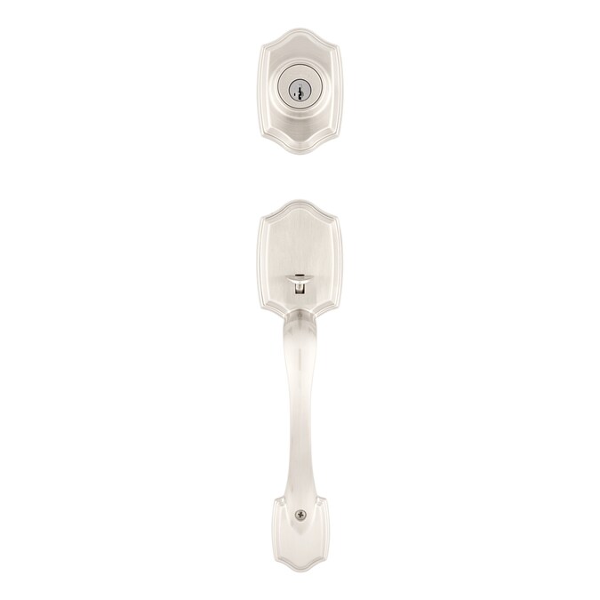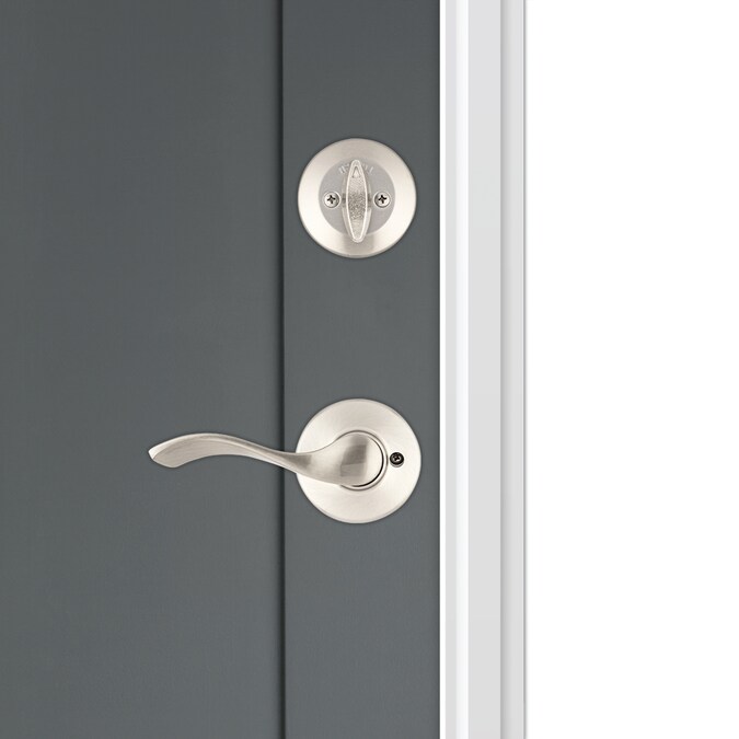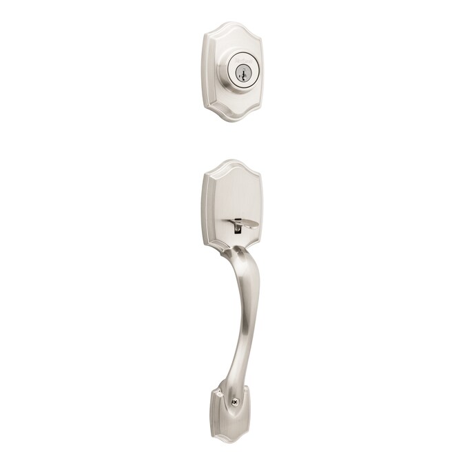 As the industry leader, Kwikset has provided trusted security for over 70 years and has become synonymous with security, peace of mind, style and innovation. The beveled design of the Belleview adds elegance to its traditional arched shape. The latch bolt is operated by the thumb piece on the outside and the grip on the inside. The deadbolt is operated by a key on the outside and a thumb turn on the inside. The crisp, clean appearance of the Satin Nickel finish adds to the overall look of the product and brings a modern feel.