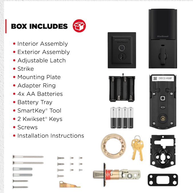 - INTRUSION DETECTION: Instant notifications in the Kwikset app alert you of any unusual lock activity, including invalid entry attempts or lock tampering