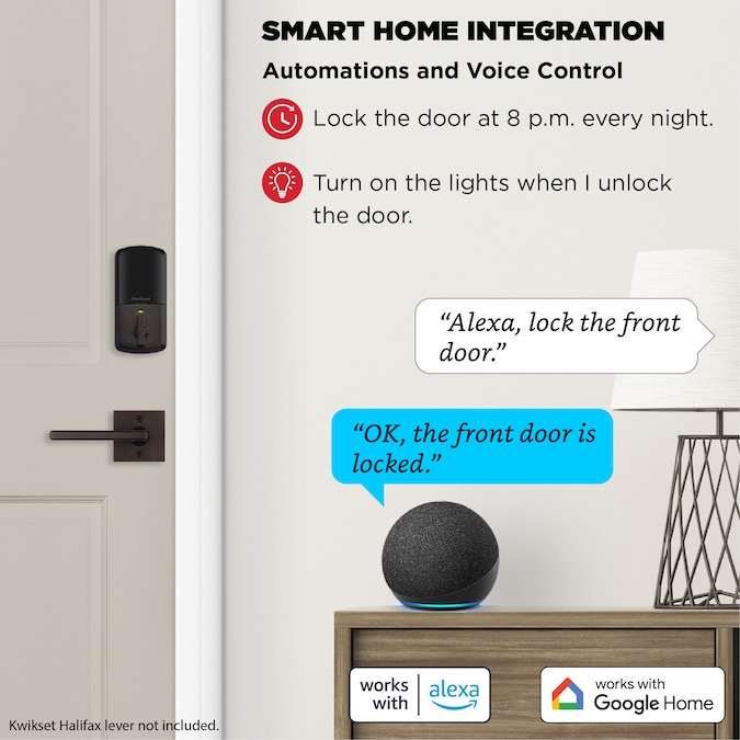 - SMART HOME INTEGRATION: Works with Amazon Alexa or Google Home, control your lock with your voice and create helpful automations that keep your home secure