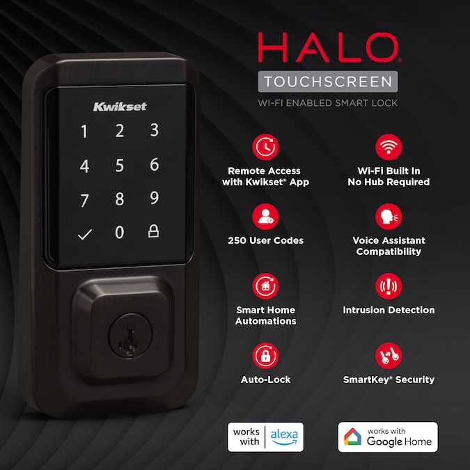 Unlock simplicity, connectivity and smart living with Halo® Touchscreen. Control Halo® Touchscreen from anywhere with the Kwikset® app (no hub required), and integrate it with a smart home platform to use voice commands and create helpful automations. Enjoy the freedom and flexibility of remote access, keyless entry and customizable access codes for all your family’s needs.