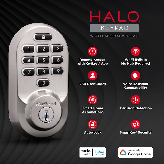 Unlock simplicity, connectivity and smart living with Halo® Keypad. Control Halo® Keypad from anywhere with the Kwikset® app (no hub required), and integrate it with a smart home platform to use voice commands and create helpful automations. Enjoy the freedom and flexibility of remote access, keyless entry and customizable access codes for all your family’s needs.