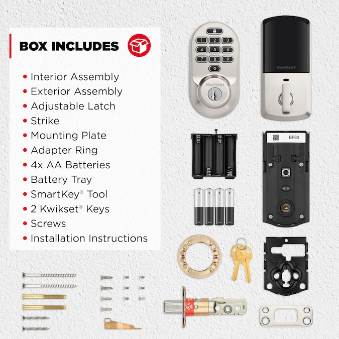 - INTRUSION DETECTION: Instant notifications in the Kwikset app alert you of any unusual lock activity, including invalid code attempts or lock tampering