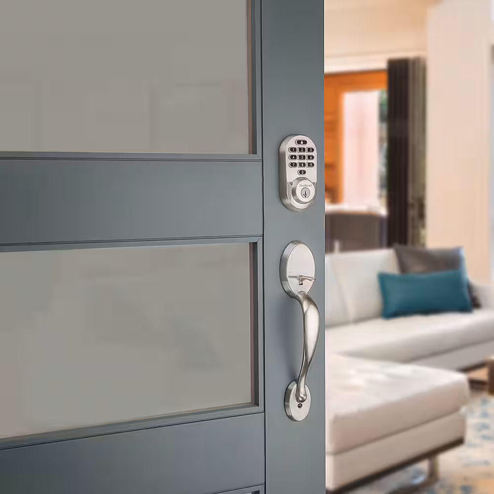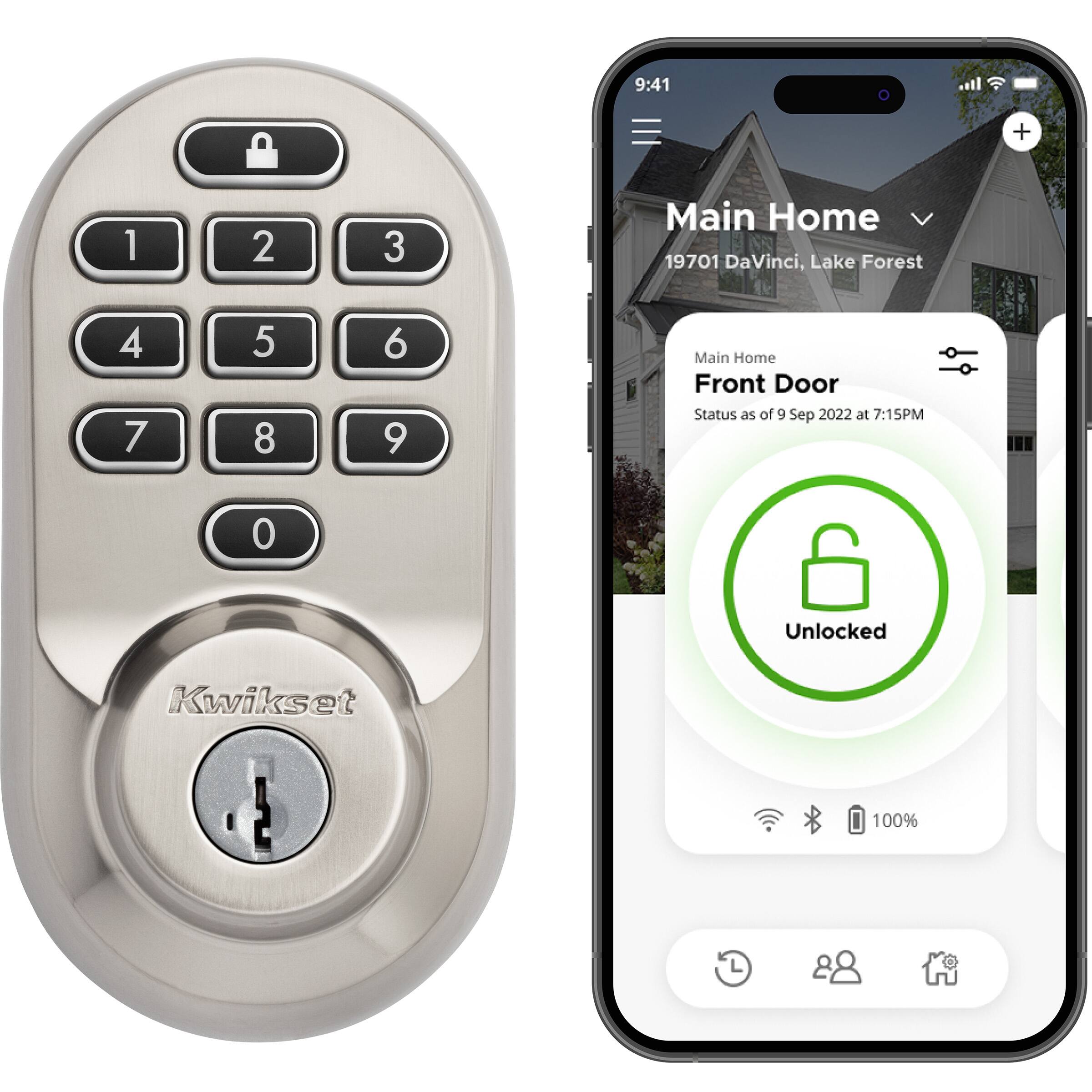 Halo Wi-Fi Smart Lock is a keyless entry electronic deadbolt featuring SmartKey. Using the Kwikset App, you can lock/unlock, program up to 250 user access codes, and receive notifications from anywhere there’s an Internet connection. This single cylinder deadbolt can be locked or unlocked by using the keypad or key from the outside as well as the turn button from the inside. The crisp, clean appearance of the Satin Nickel finish brings a modern feel.