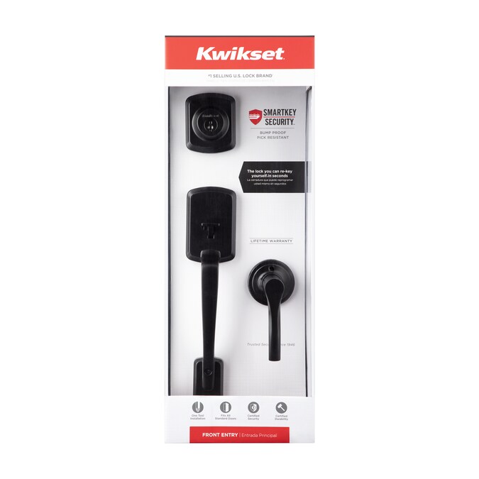 As the industry leader, Kwikset has provided trusted security for over 70 years and has become synonymous with security, peace of mind, style and innovation. The latch bolt is operated by the thumb piece on the outside and the grip on the inside. The deadbolt is operated by a key on the outside and a thumb turn on the inside. The rich tones of Matte Black add the finishing touch to this product. The Matte Black finish provides a rich and warm complement to the product’s style.