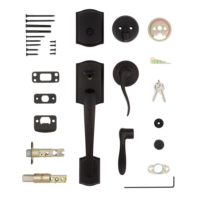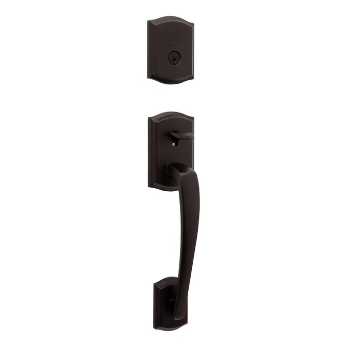 The Prescott handleset has an elegant but modest appearance that will bring charm to any home. With traditional contours that provide an attractive look and comfortable feel when entering the front door. The latch bolt is operated by the thumb piece on the outside and the grip on the inside. The deadbolt is operated by a key on the outside and a thumb turn on the inside. The Venetian Bronze finish is hand-rubbed to reveal unique bronze highlights and provides a rich and warm complement to the product’s style.