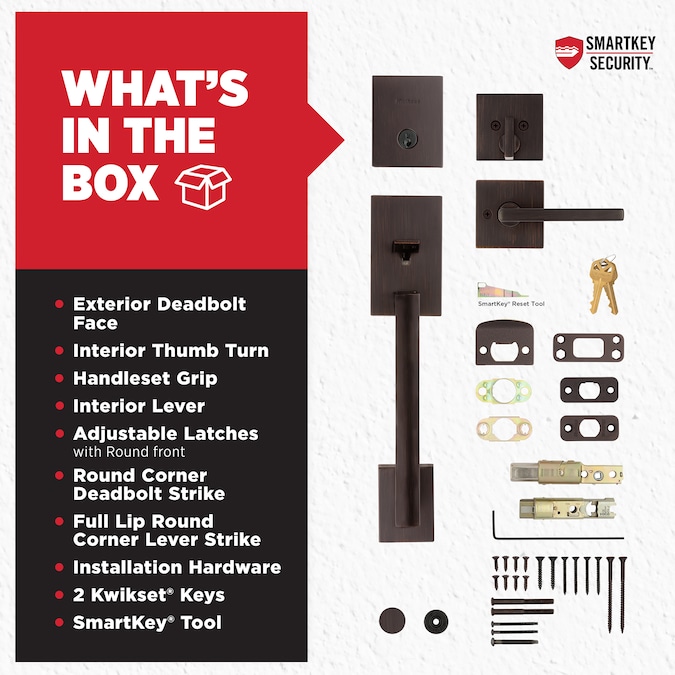• SmartKey Security™ re-key technology is compatible with Kwikset (KW1) keyway