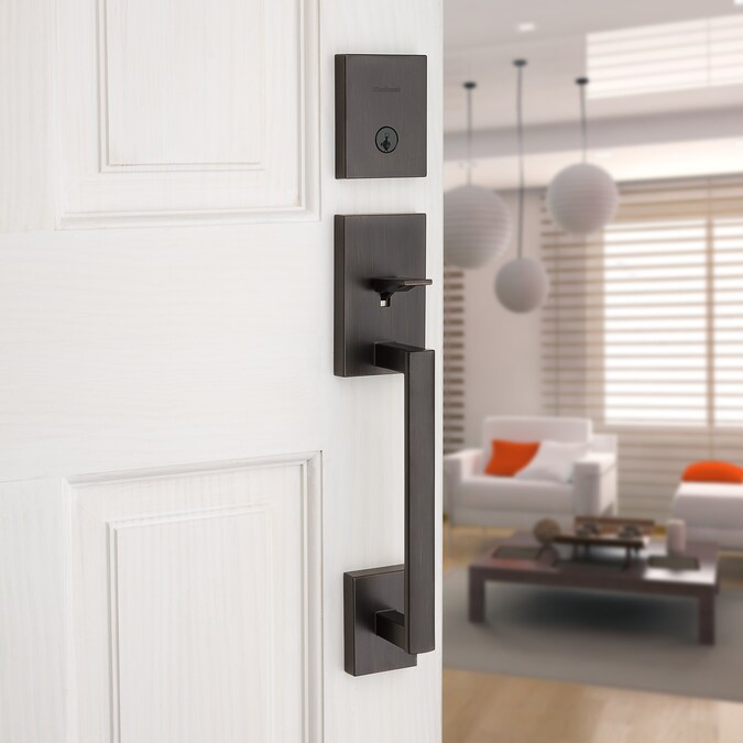 Kwikset Signature Series San Clemente Venetian Bronze Single Deadbolt Keyed Entry Door Handleset with Halifax Lever and Smartkey