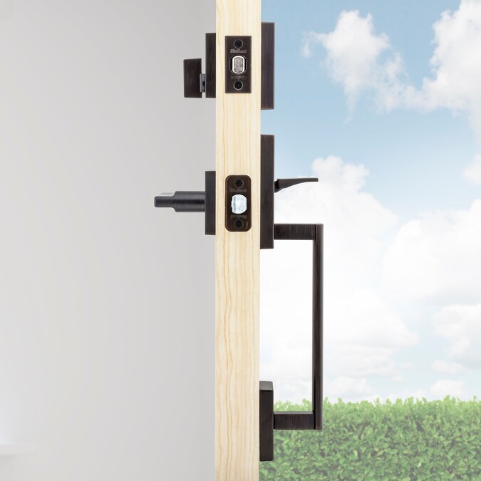 Step up to designer styles and superior security with Kwikset Signature Series products. The San Clemente handleset has a sleek, modern look. With clean lines and a variety of finishes, you can easily upgrade the entry to your home. San Clemente also features an adjustable screw that allows for easy door mounting. The latch bolt is operated by the thumb piece on the outside and the grip on the inside. The crisp, clean appearance of the Satin Nickel finish adds to the overall look of the product and brings a modern feel.