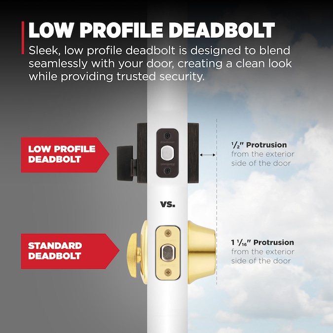 • Low Profile Contemporary Design- 50% Lower Profile than Standard Deadbolts