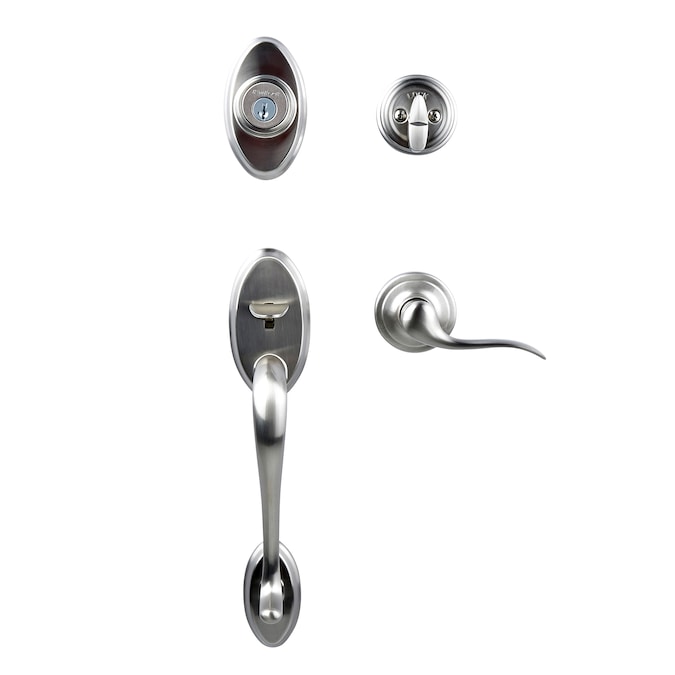 Step up to designer styles and superior security with Kwikset Signature Series products. Shelburne’s curvaceous styling expresses a sense of beauty and elegance. Handleset can be locked or unlocked by a key from the outside or with a key/turnpiece from the inside. The crisp, clean appearance of the satin nickel finish adds to the overall look of the product and brings a modern feel.