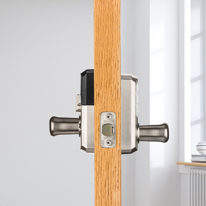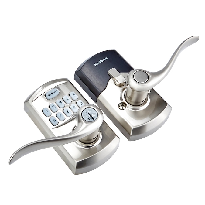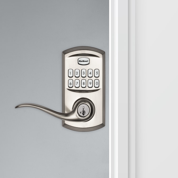 This entry lever can be locked or unlocked by using the keypad or key from the outside as well as the turn button from the inside. The crisp, clean appearance of the satin nickel finish adds to the overall look of the product and brings a modern feel.